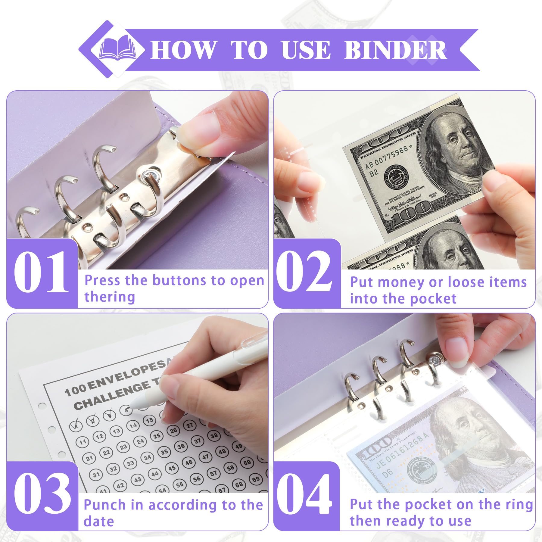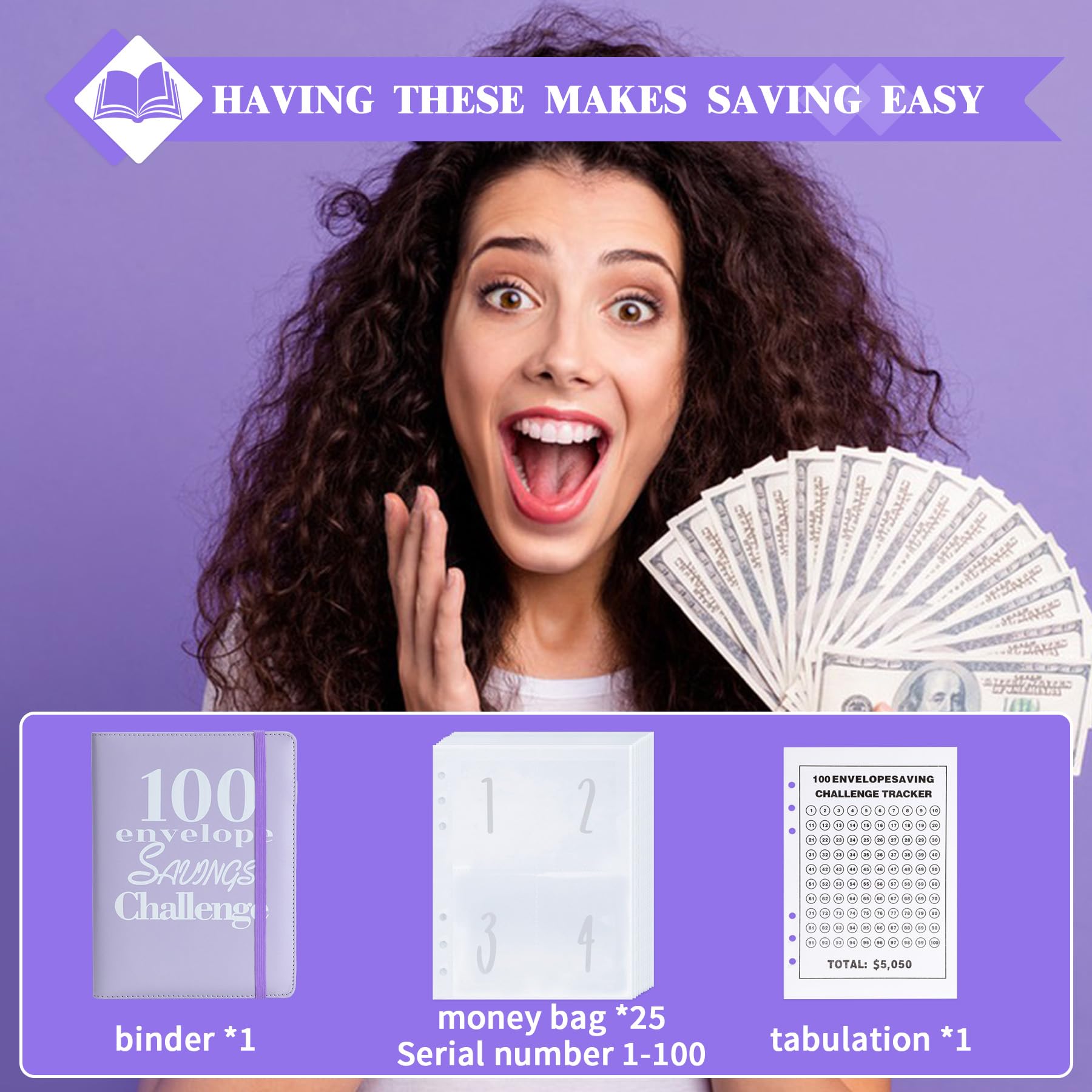 【100 Envelope Challenge Binder】100 Envelope Challenge Binder 1 to 100 waterproof tear resistant storage and protection for your money.A5 size can easily fit into backpacks and crossbody bags for easy carrying