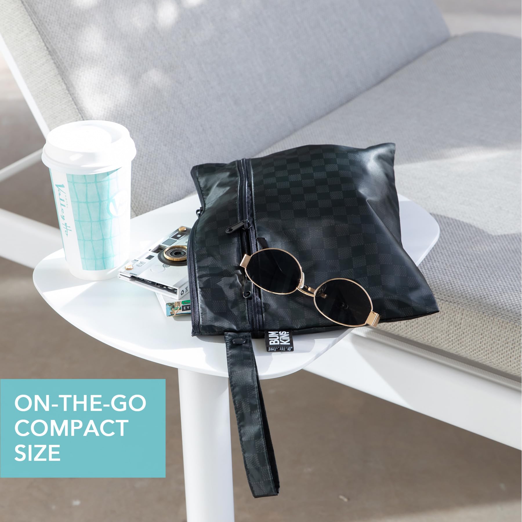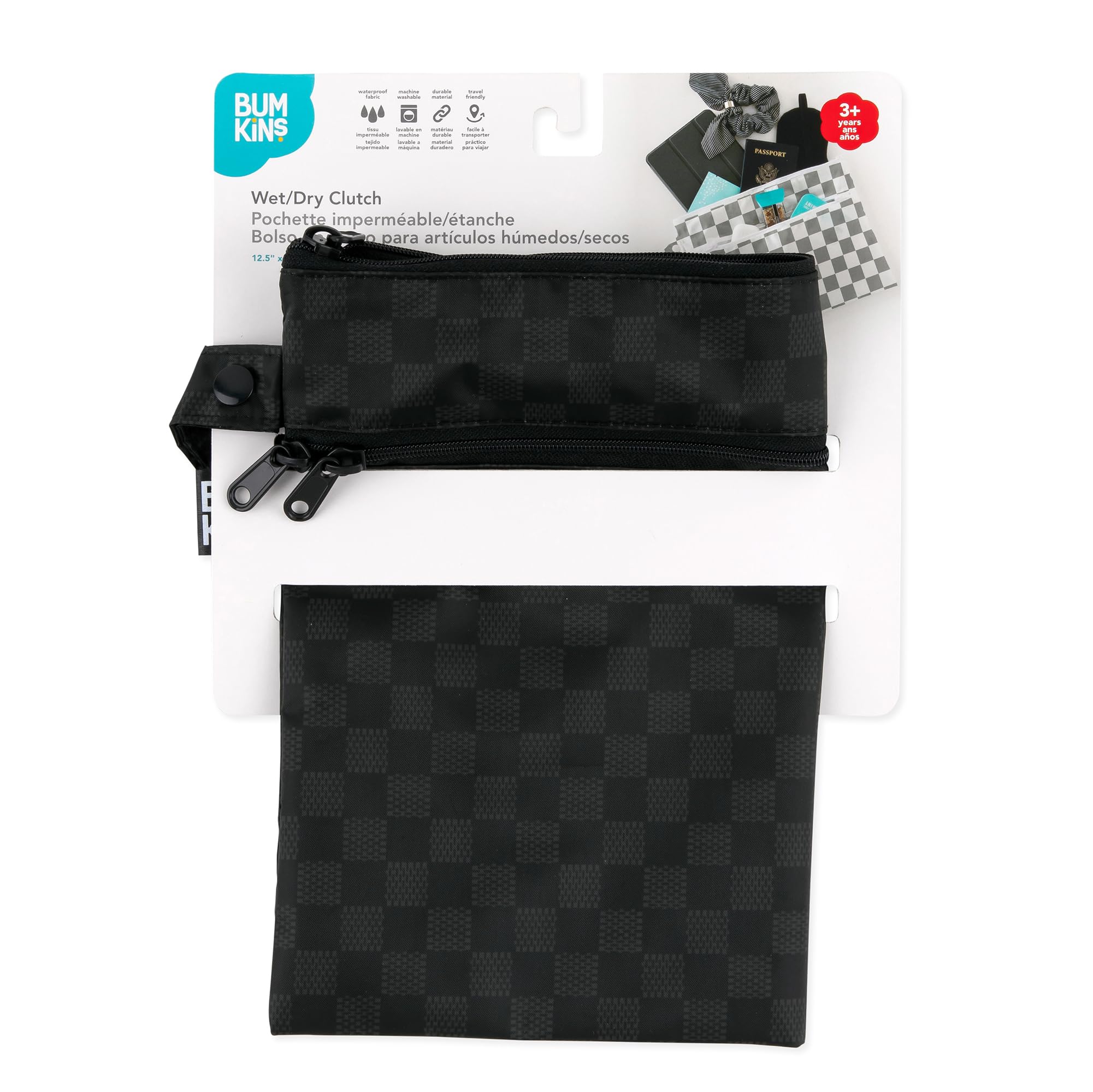 This compact travel bag has two zippered compartments to keep wet and dry items separate. Just like our popular full-size Wet Bag, the clutch size is great for carrying diapers, pump parts, dirty gym clothes and wet swimsuits. These cloth bags make excellent organizers for pacifiers, toys, accessories, toiletries, and electronics. With a snap handle, snap your bag wherever you need it – stroller, changing table or suitcase. Perfect for packing for outings at the beach, park, picnic, pool, camping. If you're traveling with kids, pack a clean change of clothes, stuffed animals, even little books and snacks. Perfect for those on-the-go! Made from Bumkins’ signature lightweight, waterproof and easy-wipe fabric. Our original fabric is 100-percent polyester with embedded TPU for waterproofing. Measures 12.5 in x 9 in (31.8 cm x 22.9 cm). Bag is two-compartment, non-gusseted, non-insulated and non-stretch. Machine washable. To extend the life of the waterproof fabric, we recommend hang drying our quick-dry fabric; always ensure fabric is completely dry before storing. For over 30 years, Bumkins has been creating thoughtful and responsibly made essentials for babies and kids, making parenting easier so families can cherish those special moments. Designed in Arizona, responsibly made in China.