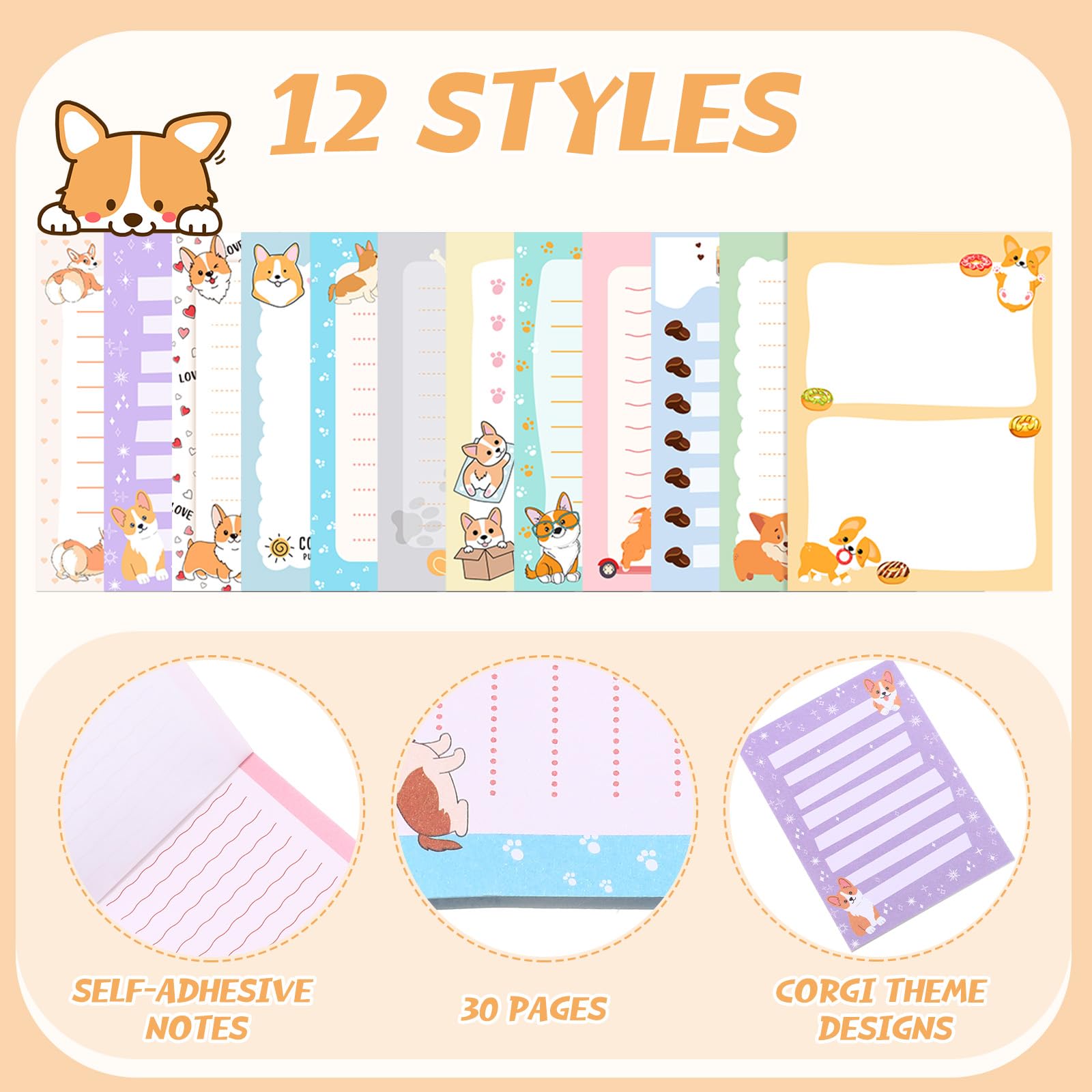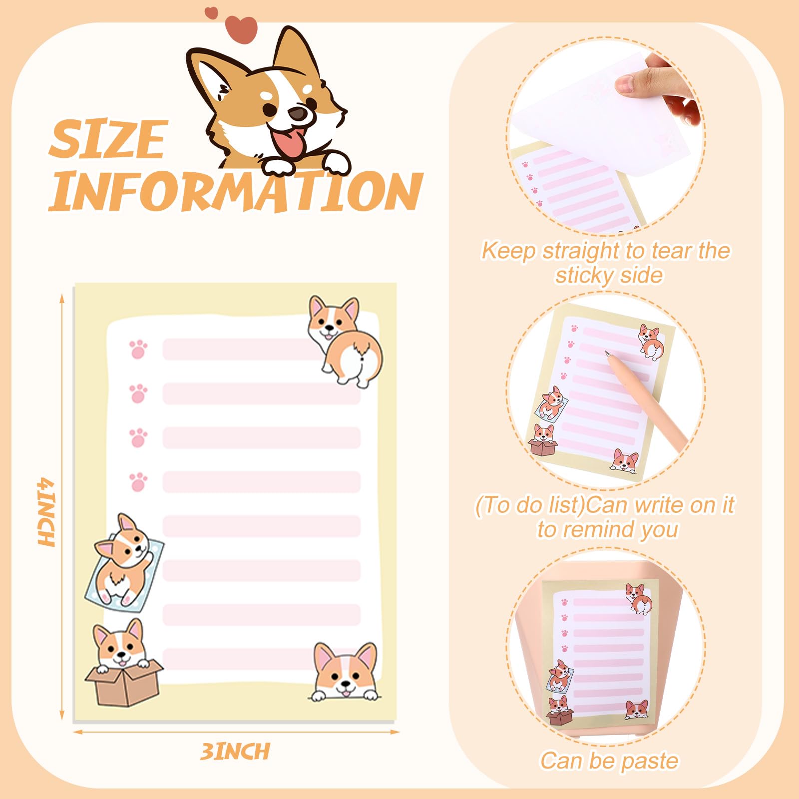 Sufficient Quantity: you will receive 12 pieces of corgi themed sticky notes, packaged with 30 pages each, for a total of 360 sheets; The dimensions are a handy 3x4 inches / 7.6x10 cm, enough quantity and rich design to meet your various needs and replacements