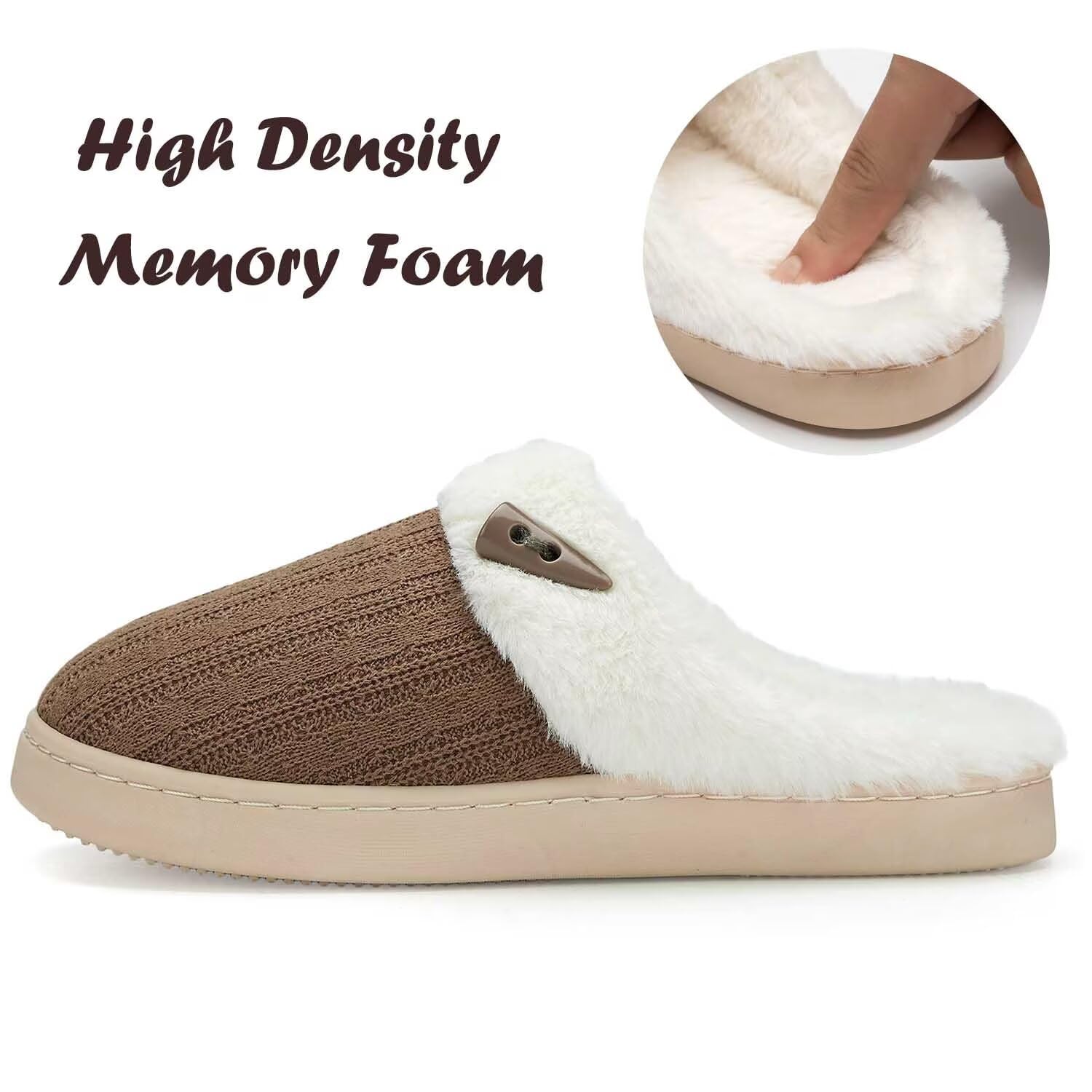 SOFT MEMORY FOAM FOOTBED:High-density memory foam cushion adds support and comfort for all day wear.Slip into these fuzzy bedroom slippers,relaxing at home or in the office.