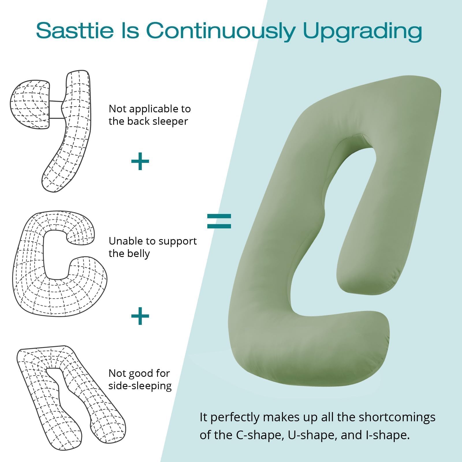 Upgraded U Shaped Pregnancy Pillows: Features an ergonomically designed shape, SASTTIE 4.0 U-shaped pregnancy pillow could fit your body well and provide firm support for your sore shoulders, numb arms, growing belly, tight back, as well as swollen feet