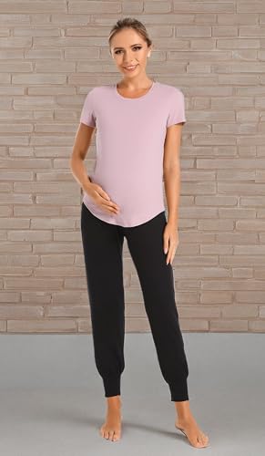 【ALL DAY MATERNITY LOUNGE PANTS】A true pair of anytime, anywhere athletic pants that can take you from yoga to brunch, and everywhere in between.Lounge around in absolute comfort with our lounge jogger made fromA cozy rayon & polyester fabric feels soft and light against skin for pregnant women.In late pregnancy, the body gets more and more tired, you'll day dream about coming home and slipping into a pair of these lounge pants.