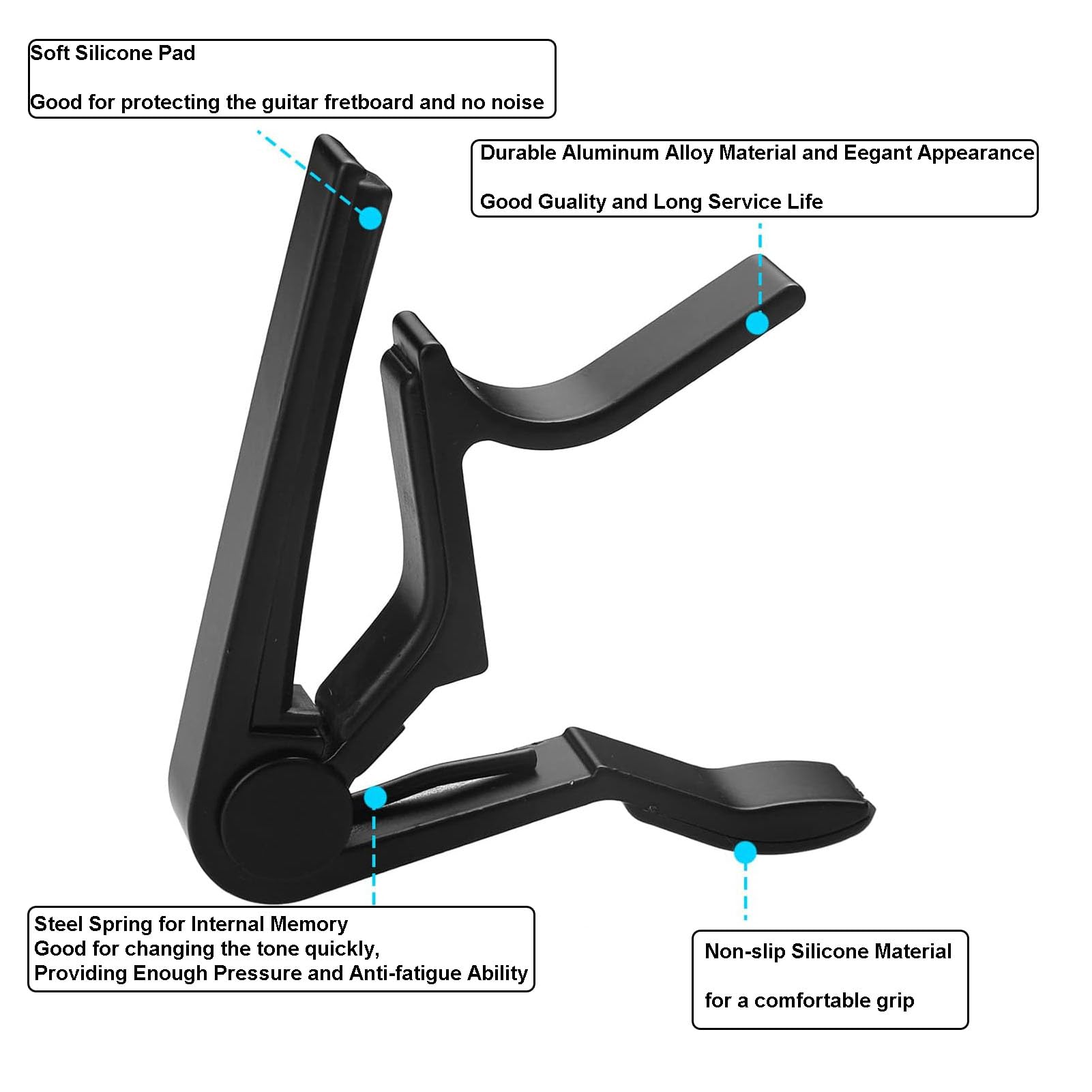 MATERIAL: Thickened silicone pads protect the guitar from scratches or damage. Premium aluminum alloy ensures reliable performance and long-lasting use
