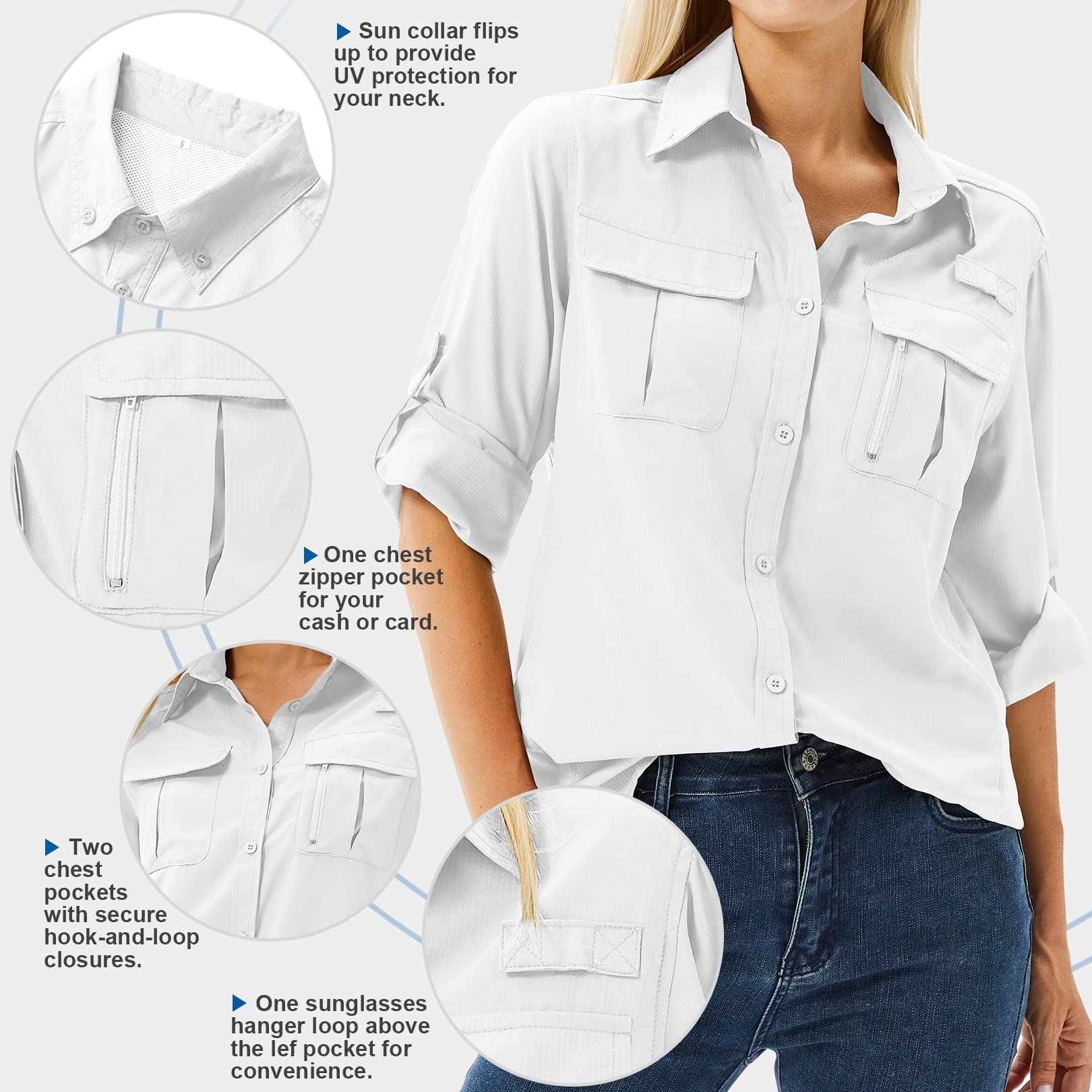 Breathable and Fast Dry:Enjoy the outdoors in style with our women's fishing shirt.The relaxed,casual fit maximizes comfort for outdoor activity.lightweight and quick dry quality polyester fabric wicks moisture away from body to keep you comfortable and dry all day.No worries about the soaking wet problem.Fabric surface is stain resistance,easy to maintain.