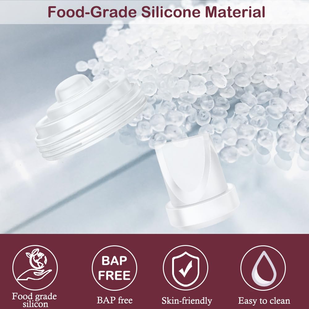 【Food Grade Silicone Material】: M5 breast pump replacement accessories are made of food grade silicone, durable, no leaking, BPA free, soft and odorless, skin-friendly for mommy and baby. soft comfortable material, Snug fit can comfort and efficient pumping.