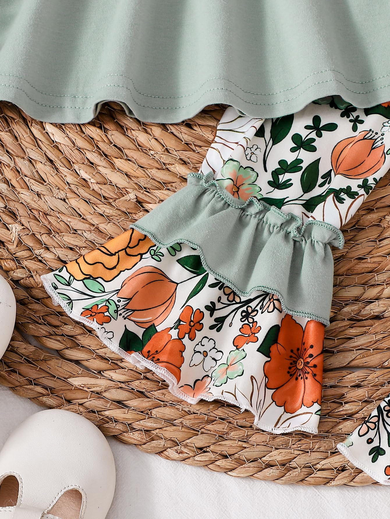 Todderl Girl Clothes Adorable Design: Baby girl outfits is designed with a crew-neck+long sleeve ruffle striped+floral shirts+stylish solid color+annimal pant that will make little girls look so cute all day.