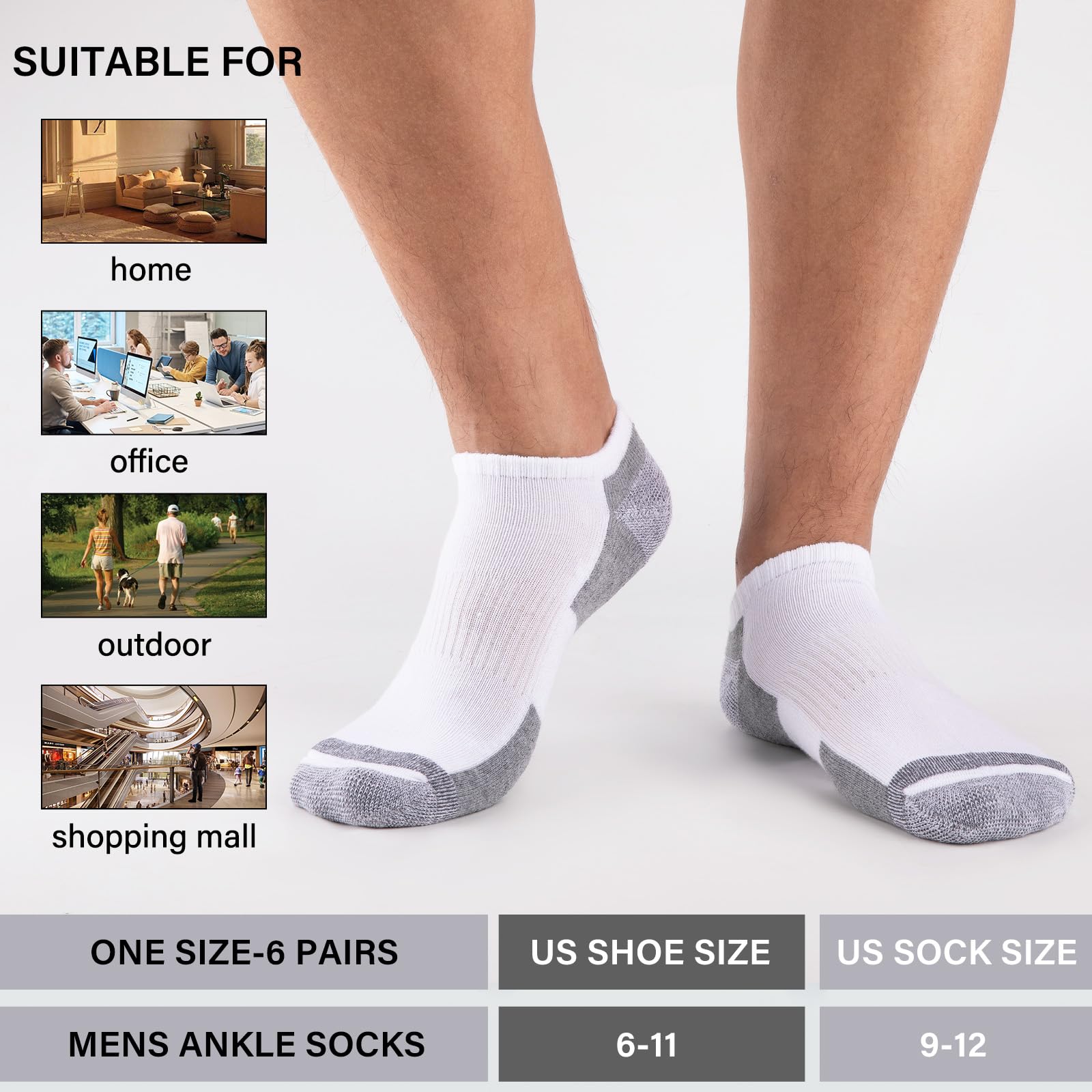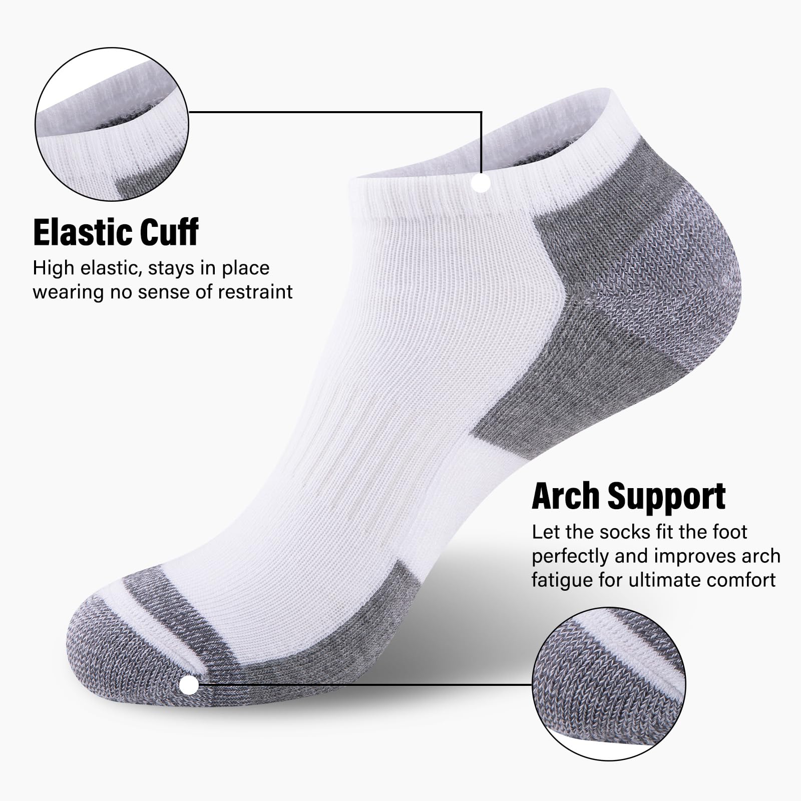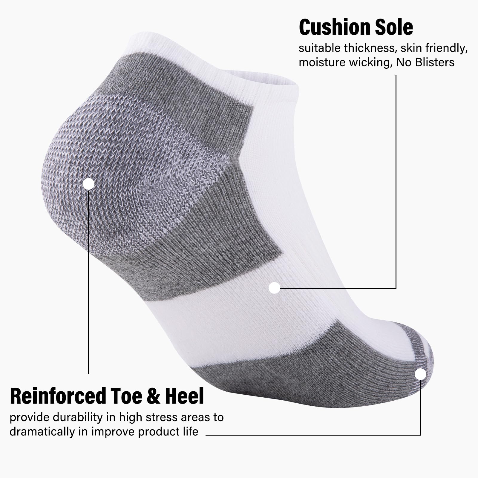 Cushioned Sole: With mid-weight cushioning on the sole, the soft material padding relieves the pressure on your feet, it also has good moisture wicking function to keep your feet dry in your daily life.