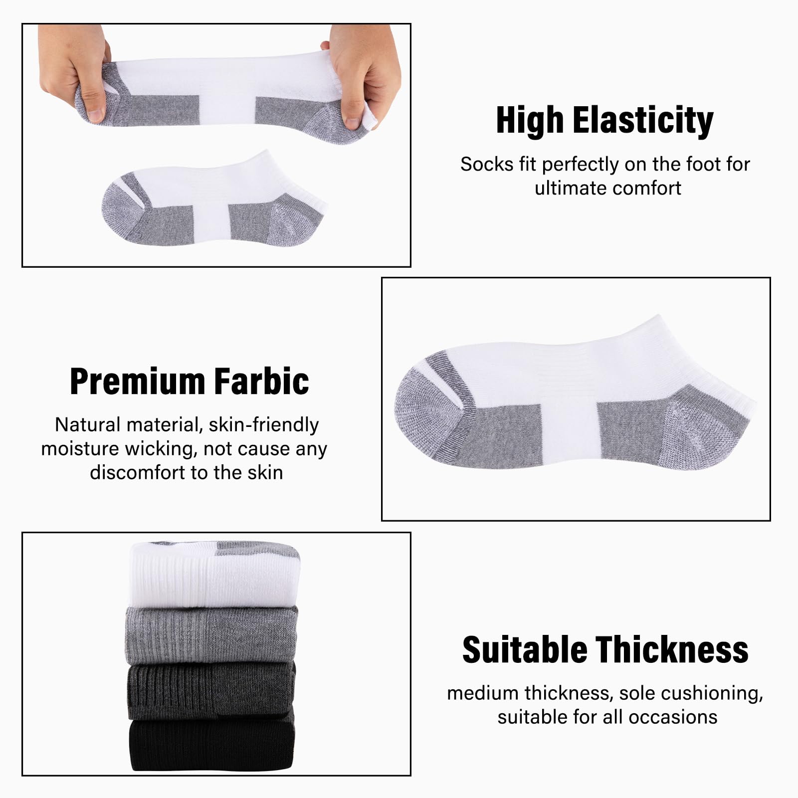 Men's ankle socks: Socks that exceed the ankle can protect your feet well, prevent blisters and slipping, men's ankle socks are versatile in style, and the appropriate thickness is suitable for daily wear, walking, jogging, etc.