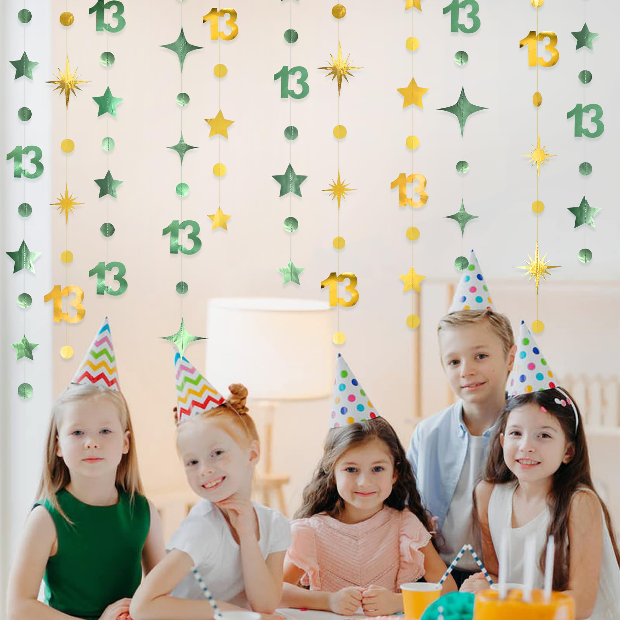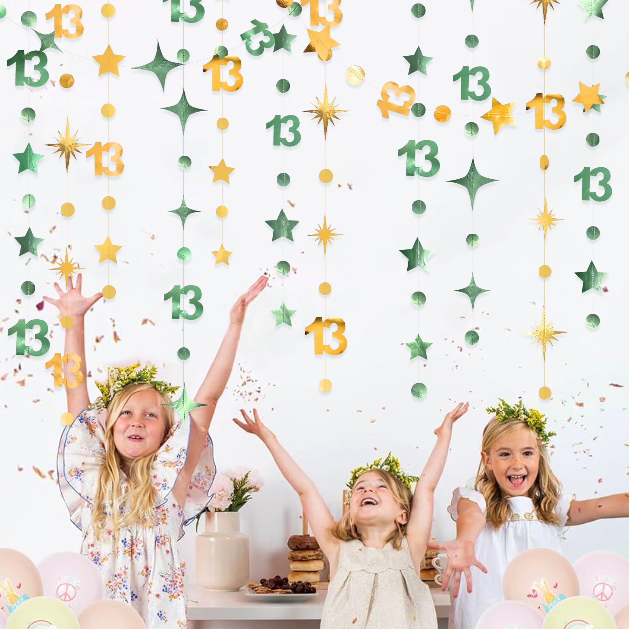 Our Sage Green Gold Happy 13th Birthday Party Decorations Kit includes: ✓ 4 Pcs metallic star circle dot garland including number 13We have the perfect decoration party supplies set for the occasion: It’s perfect for: ► 13 birthday decorations ► 13 year old birthday decorations ► 13th birthday decorations for girls ► 13th birthday decorations for boys ► official teenager birthday decorations ►13 official teenager decorations ►Cheers to 13 years party decorations ► Bridal shower ► Engagement ► Anniversary ► Wedding Parties! Our thirteen happy birthday party decorations is ready for its close up - we can't wait to see what memories you create! Have fun!