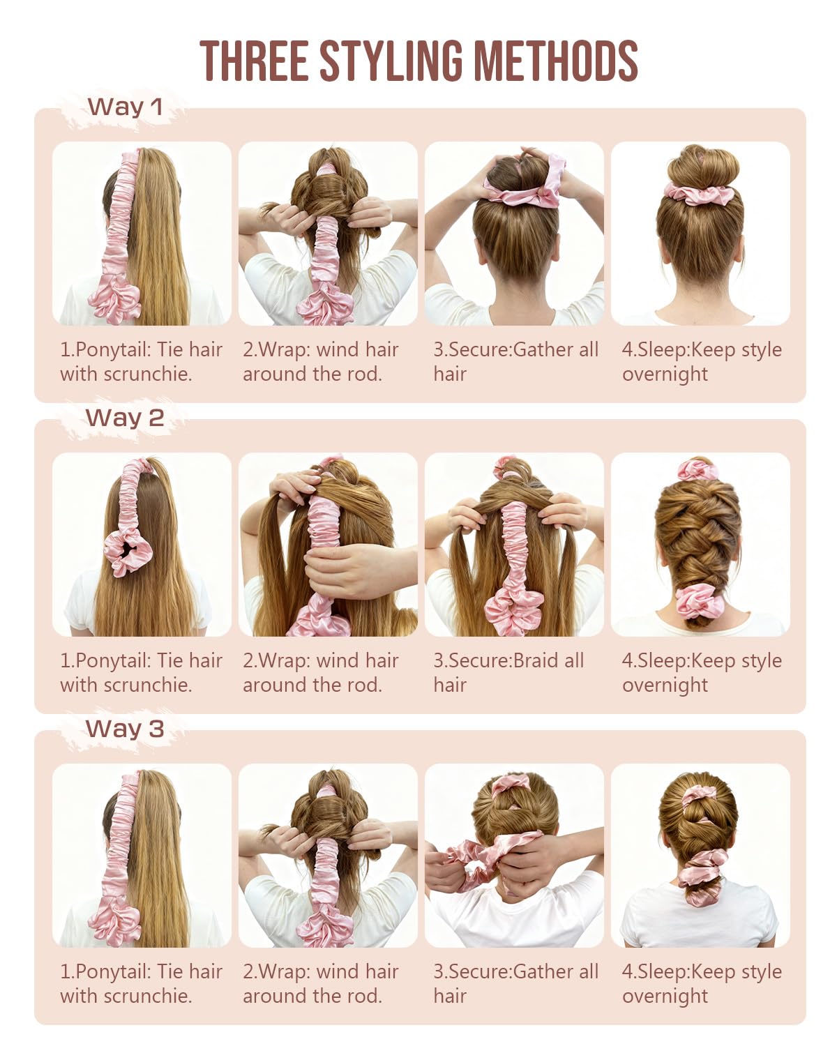 Quick 3-4 Minute Setup: Designed for heatless curls overnight, this hair curler only requires two simple steps: twist and wrap. These curling rods or overnight blowout rods make getting beautiful heatless curls quick and easy, even for beginners, saving time while you sleep comfortably.