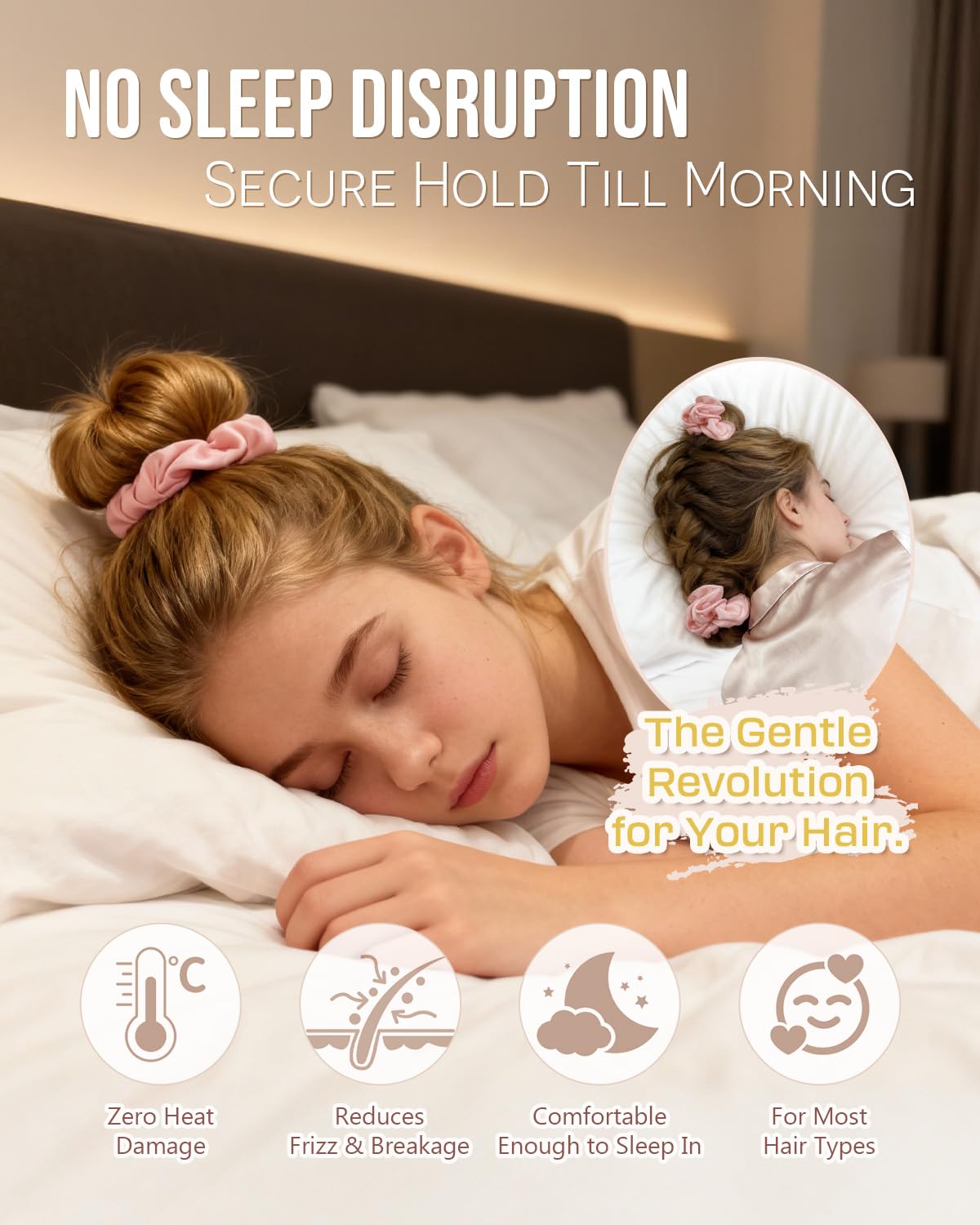 Wake Up to Heatless Curls Overnight (Loose Waves): Start with slightly damp or oiled hair. For lasting curls, the key is a tight wrap! Coil your hair snugly around the rod before bed. For best, long-lasting results, leave it in for the full 6-8 hours. Sleep comfortably while the curls set,then unwrap in the morning for Loose Waves curls with zero heat damage.