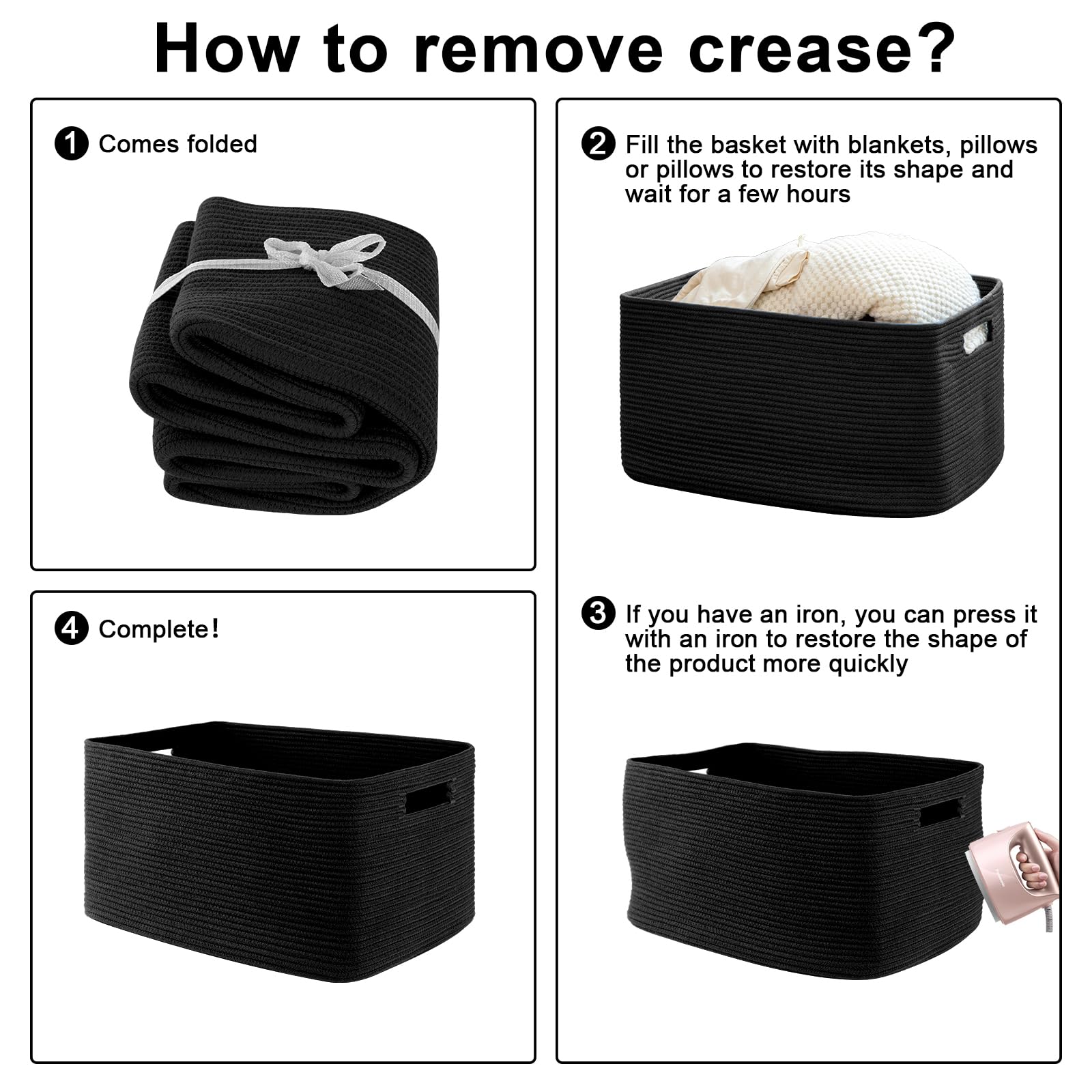 NOTE: The toy basket is folded, but it will turn back to its elegant shape quickly if you fill it with some pillows or blankets, and iron is great idea to remove the creases