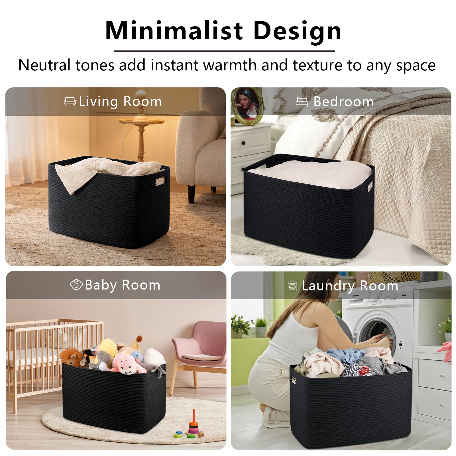 OIAHOMY 118L XXXLarge Cotton Rope Storage Basket, Oversized Blanket Basket, Used for Organizing Dirty Clothes in Living Room, Bedroom, Nursery, Dog Toy Storage Bins, 25" x 17" x 16",Black