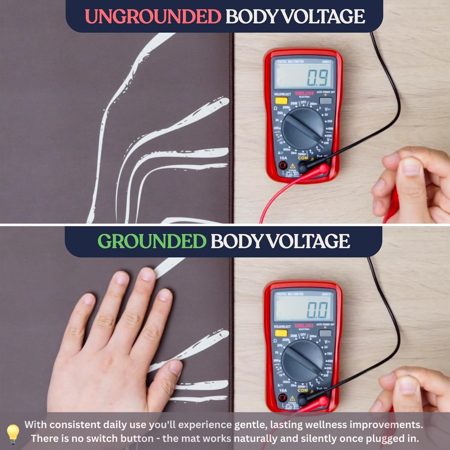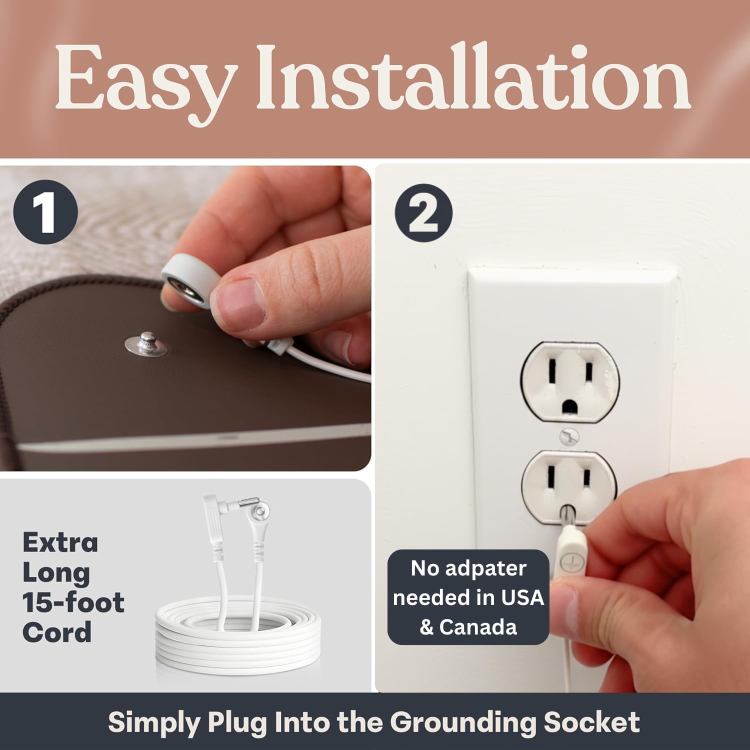 EASY 2-STEP SETUP - Snap cord into mat corner, plug into grounded outlet (no adapters needed for US/Canada). 15-foot cord reaches desk, bed, or couch easily. Don't feel anything? That's normal - grounding works subtly over time, not instantly. Use 30+ minutes daily for best results.