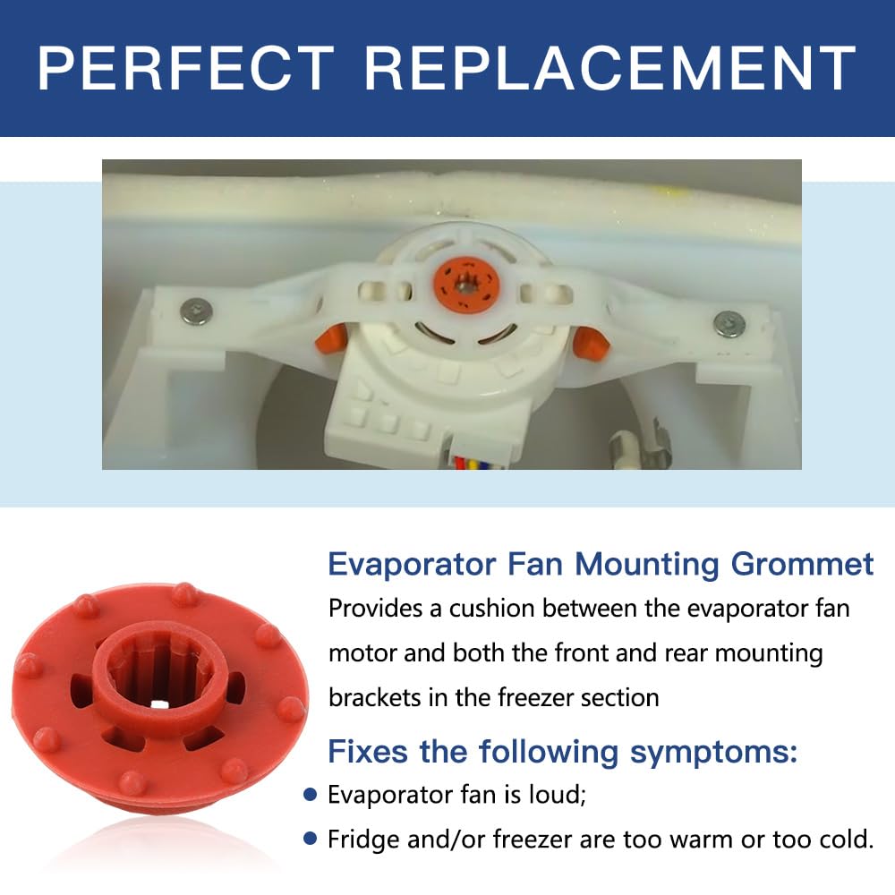 【Premium Quality】The Refrigerator Evaporator Fan Mounting Grommet is made of food-grade silicone, with better elasticity and durability, and well-tested by the manufacturer to ensure the best performance for your refrigerator. Fixes the following symptoms: Evaporator fan is loud; Fridge and/or freezer are too warm or too cold.