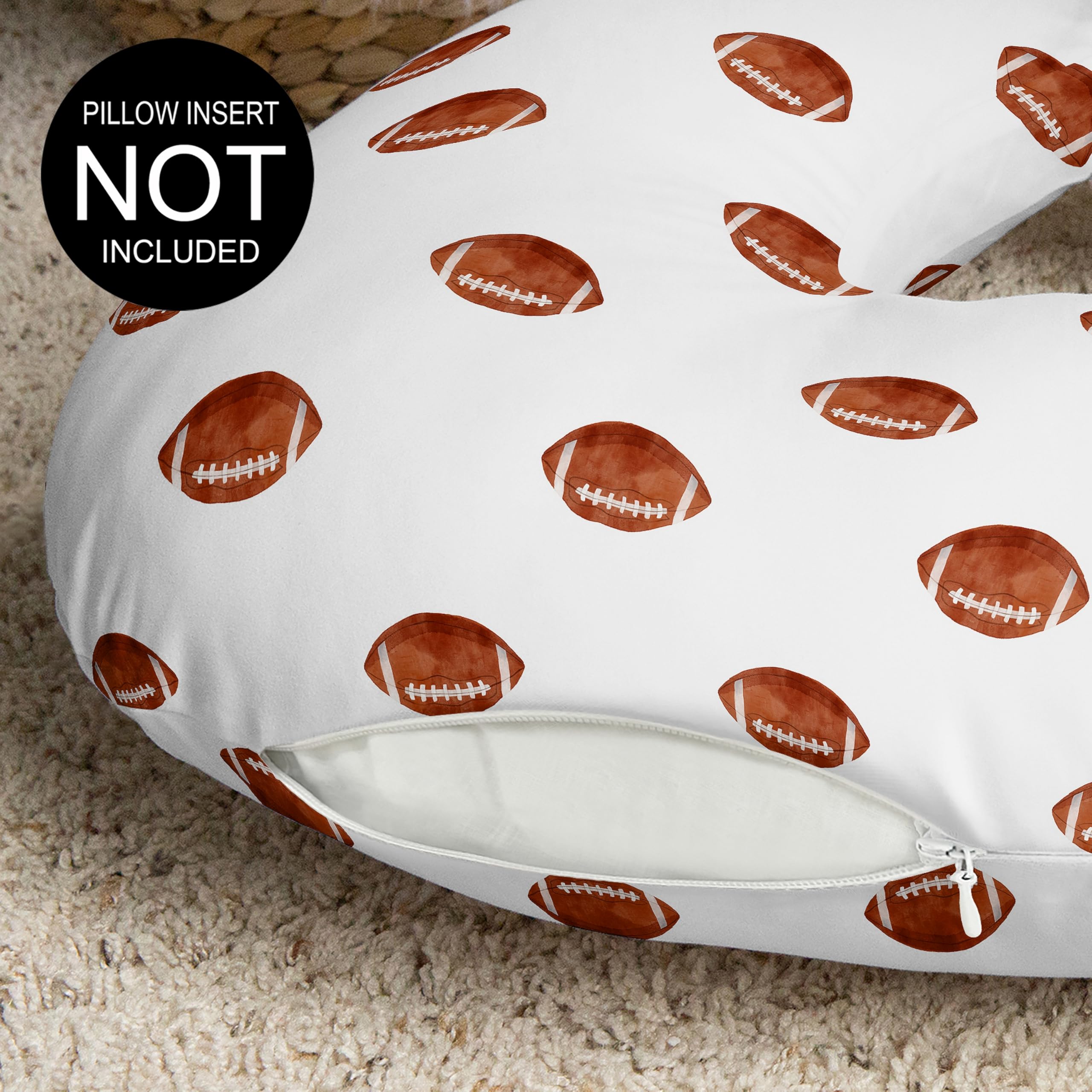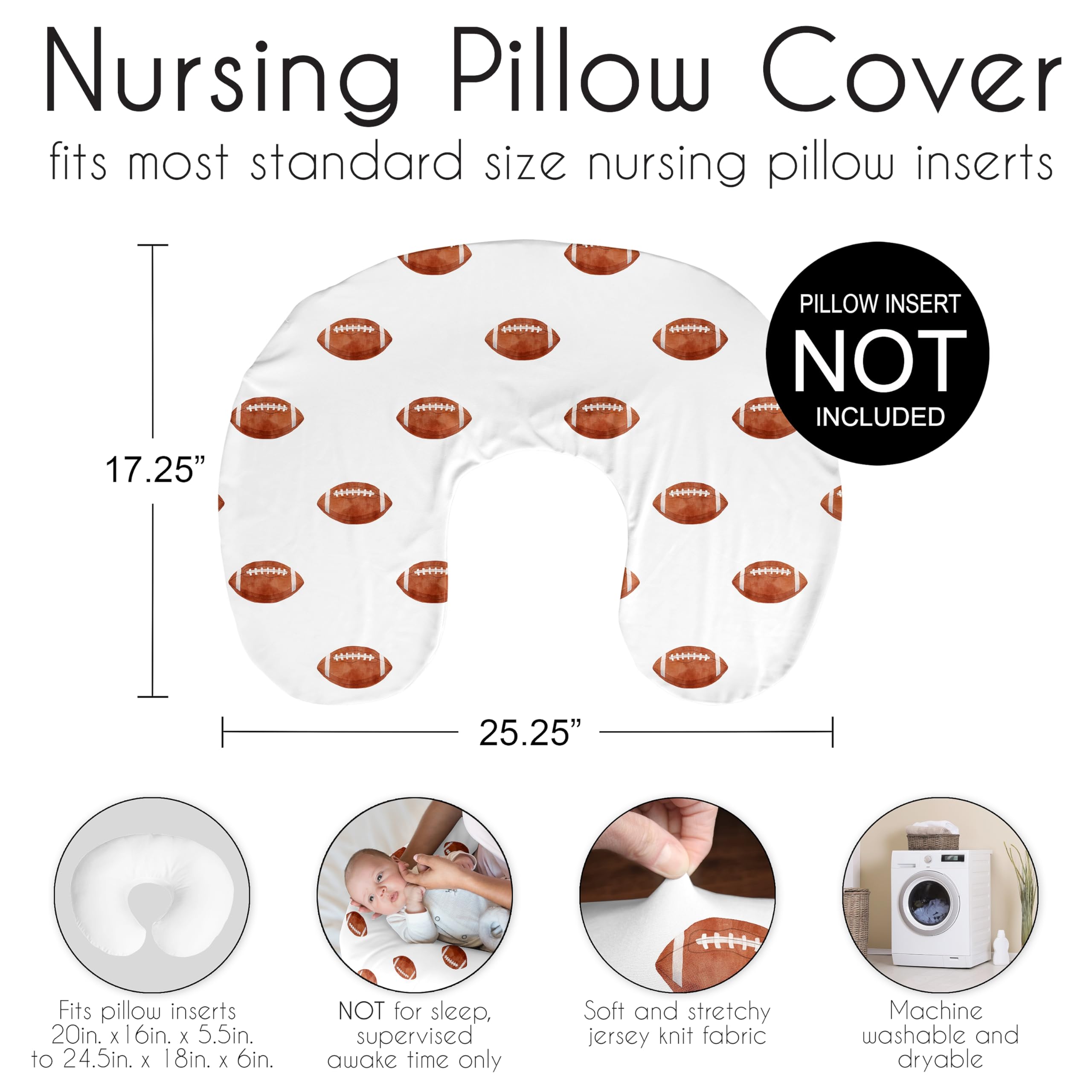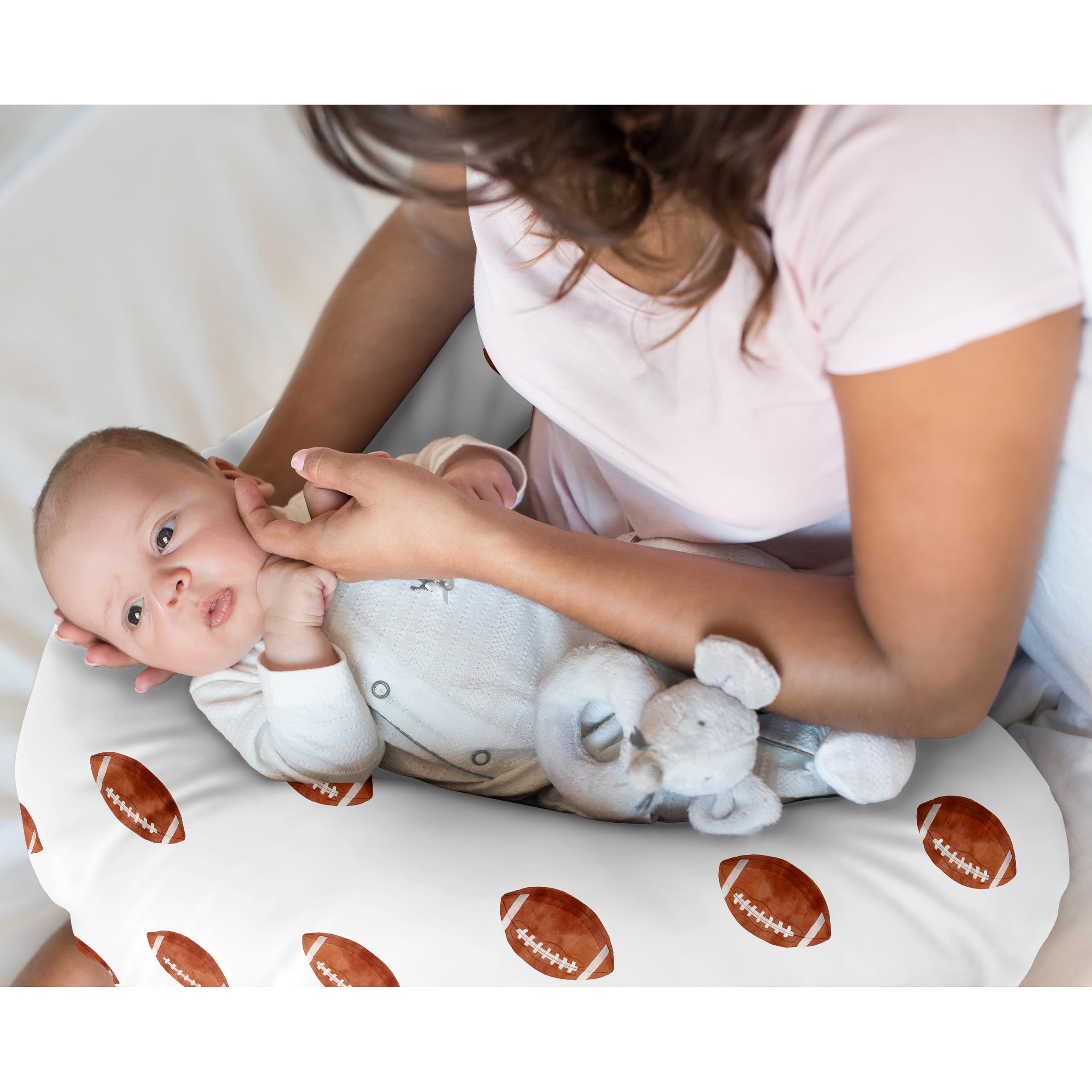 This baby nursing pillow cover is designed using a watercolor brown and white football print for sports theme vintage sport themed collection.