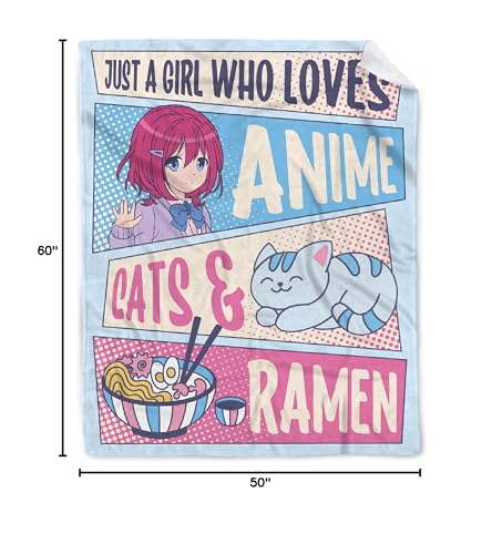 LIGHTWEIGHT FLUFFY FABRIC - These Just A Girl Who Loves Anime Cats And Ramen Blanket Are Made Of 100% Polyester Microfiber Fabric.Suitable For Spring/summer/autumn/winter.No Shedding And Fading.Good Choice For Gifts From Family And Friends.