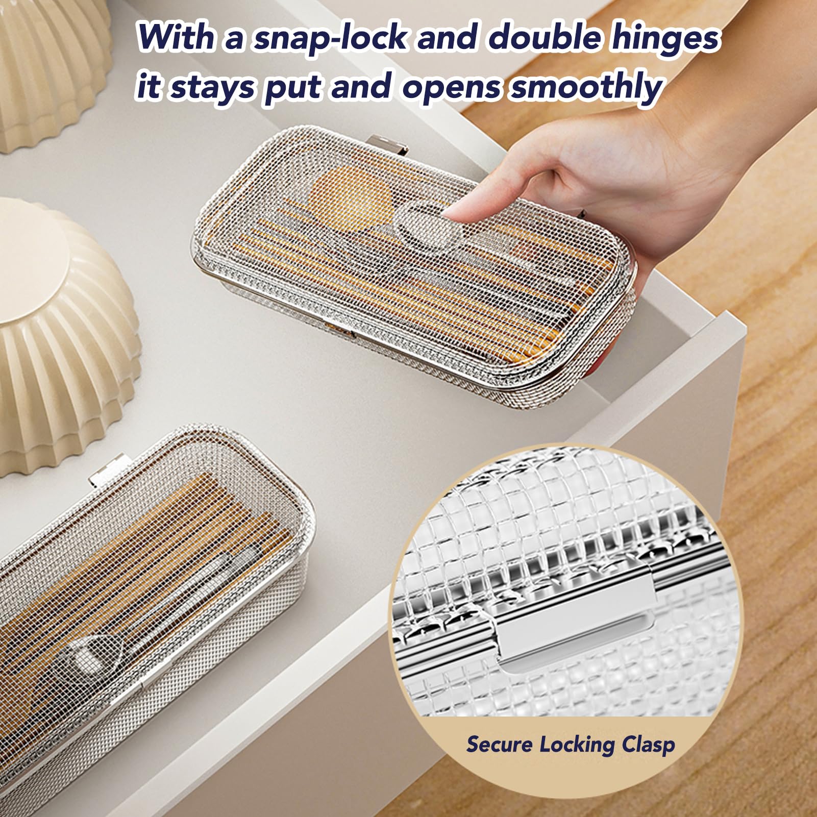 1. Versatile Storage - Perfectly sized to hold spoons, chopsticks, fruit forks, and other small items, preventing them from slipping through cracks and clashing with ceramic and glassware