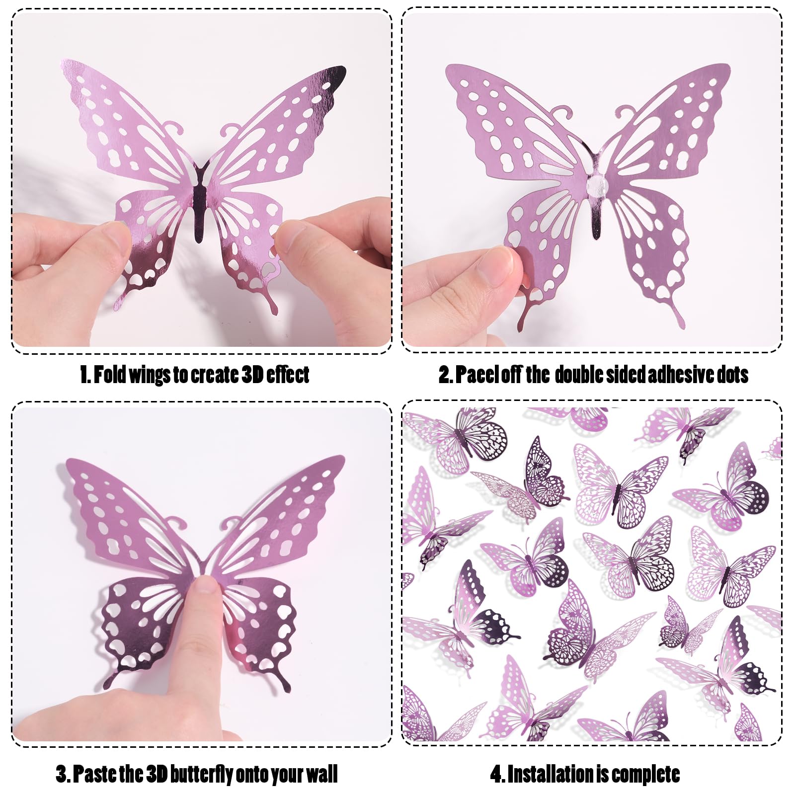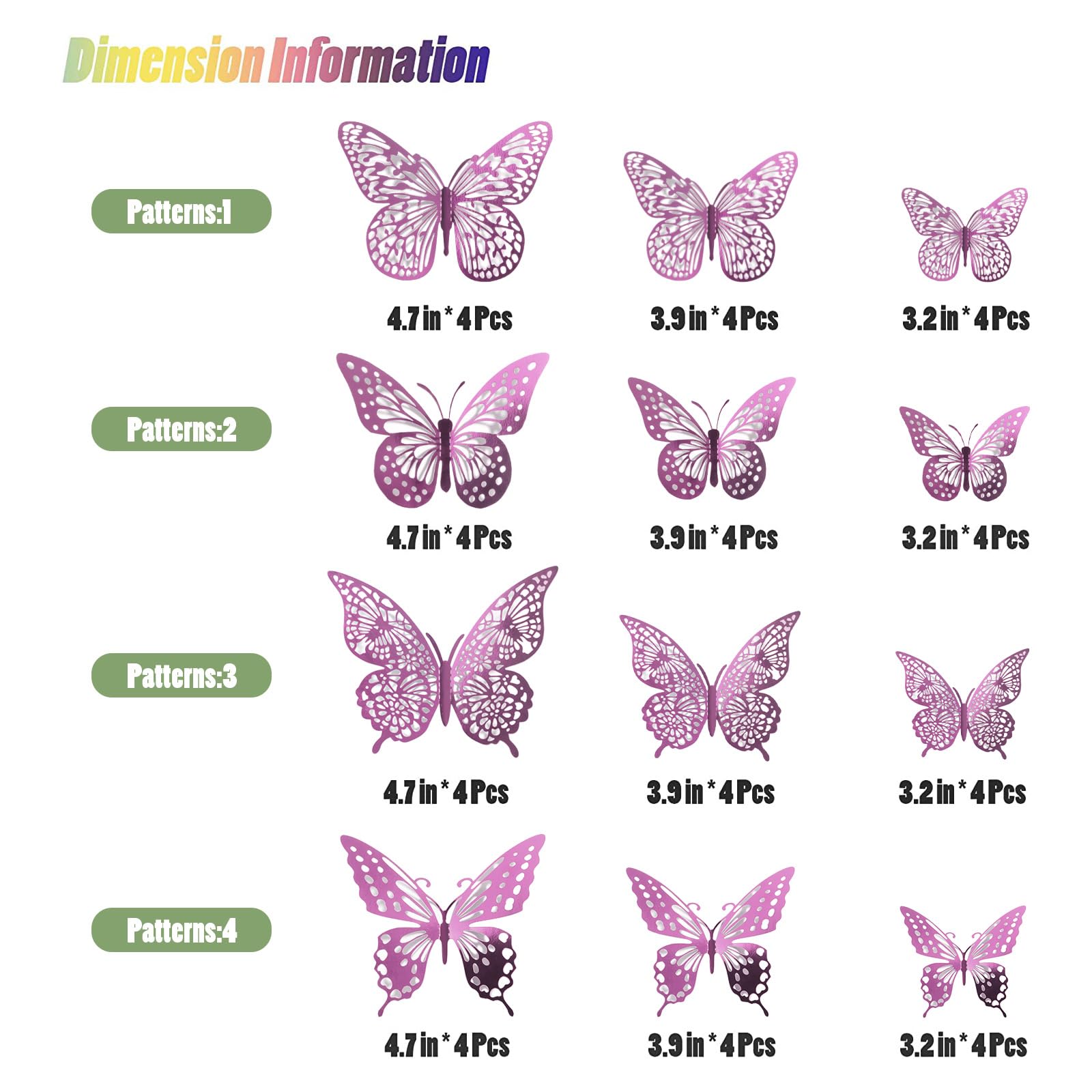 【Package Included】48 pcs butterflies: 12 pcs Style 1, 12 pcs Style 2, 12 pcs Style 3, 12 pcs Style 4, each style has 3 sizes(3", 4", 5"). Coming with 48 pcs double sided adhesive dots.
