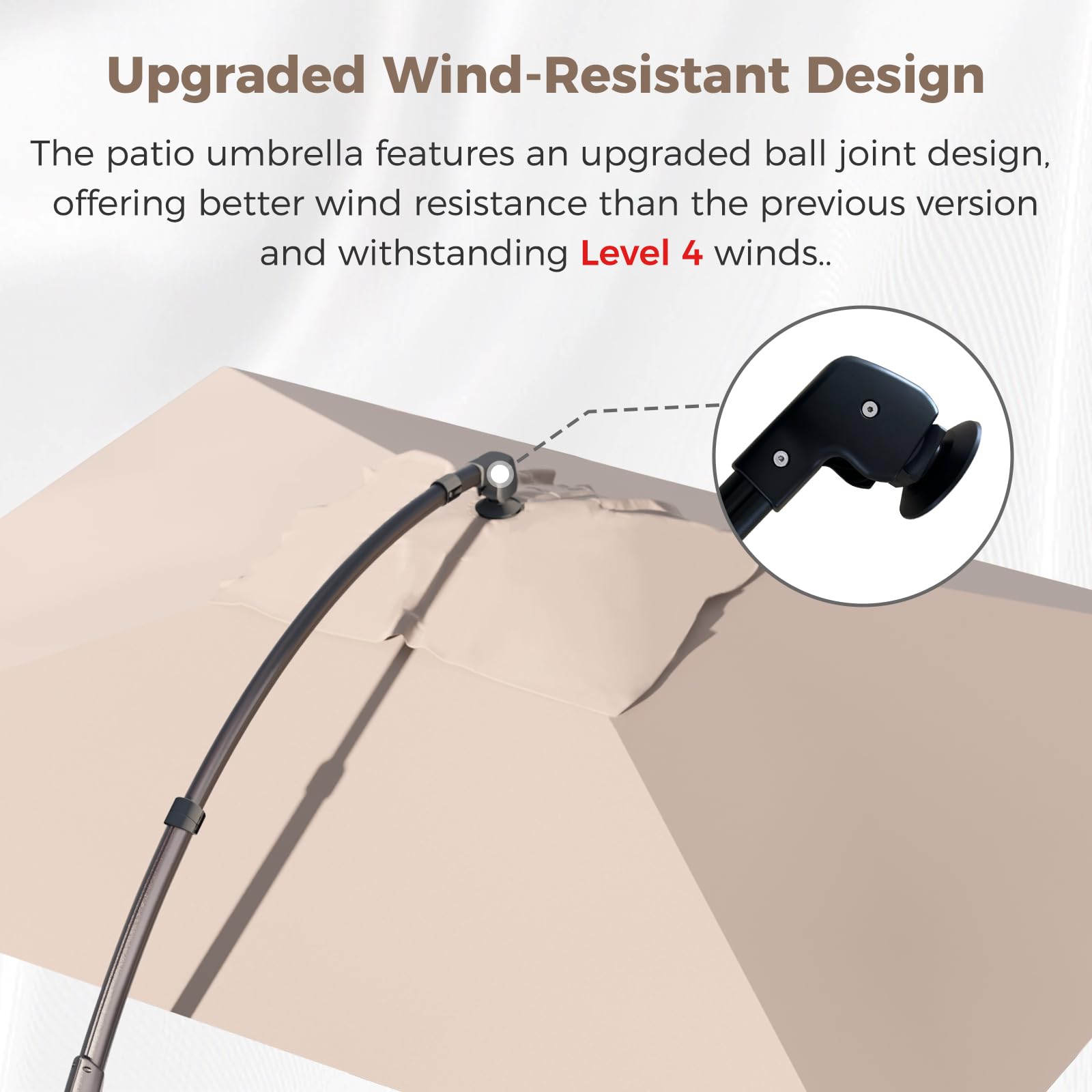 ELEGANT CURVED POLE DESIGN: This large outdoor umbrella features a unique design with a crank for easy operation. The heavy-duty polyester canopy resists water and UV rays, while the reinforced, powder-coated aluminum pole offers enhanced rust resistance