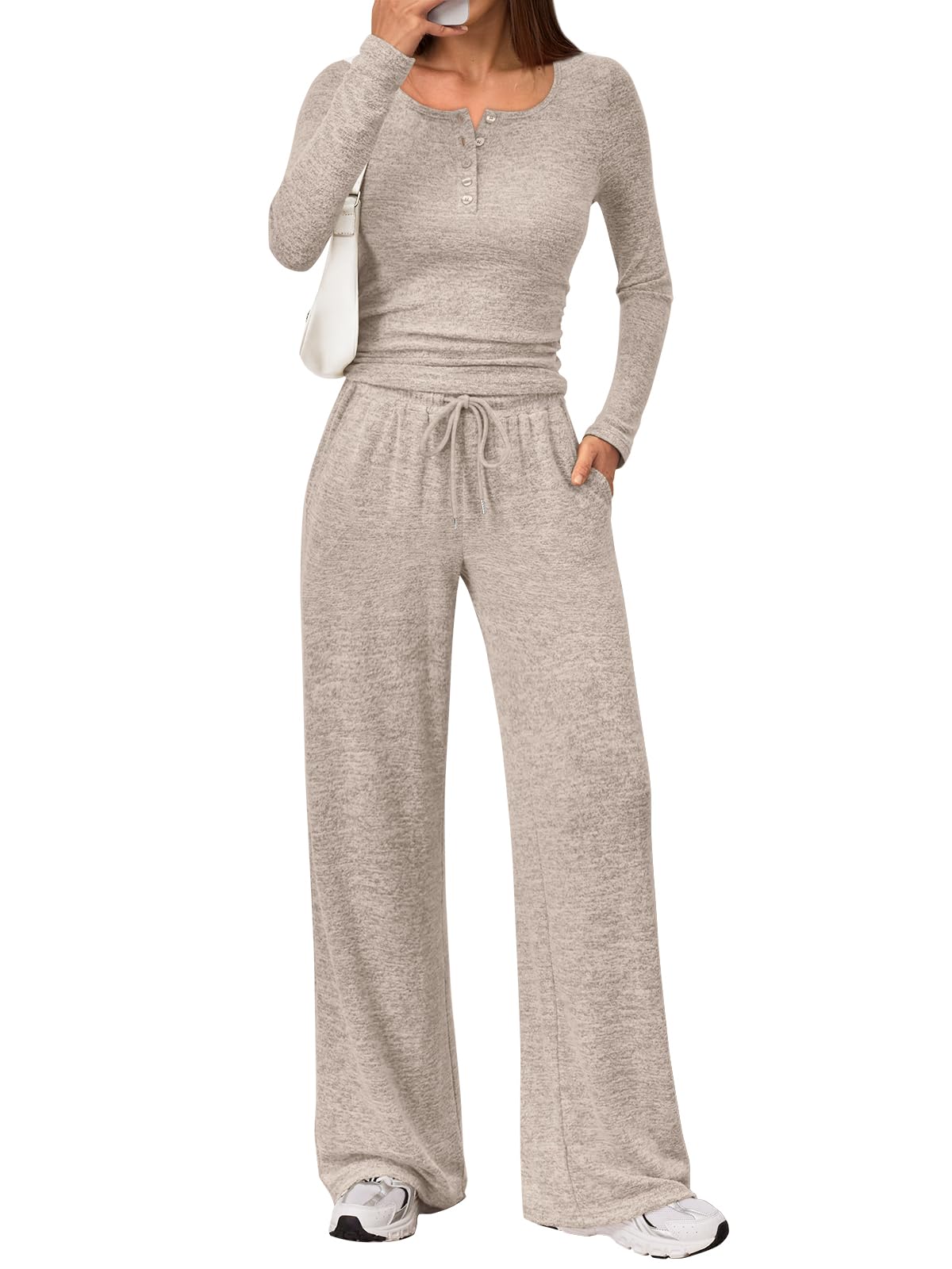 Design & Style: With a sleek crop top and wide-leg pants, this set is designed for those who love a mix of style and relaxation. The side ruching adds a touch of elegance, while the drawstring waist on the pants guarantees a comfortable fit that moves with you.