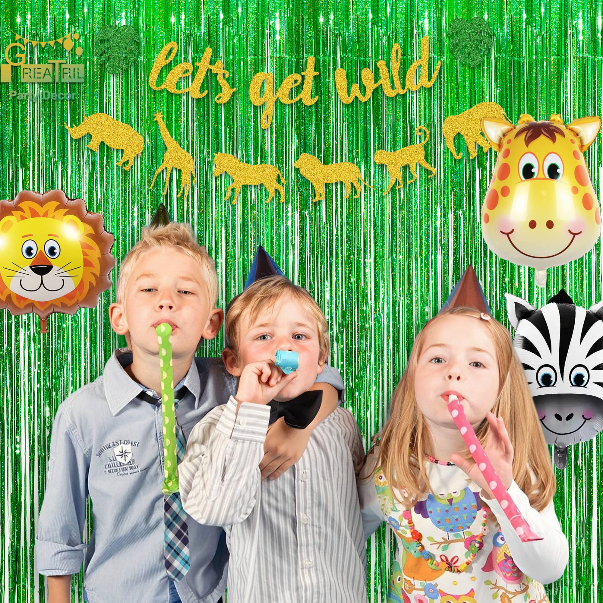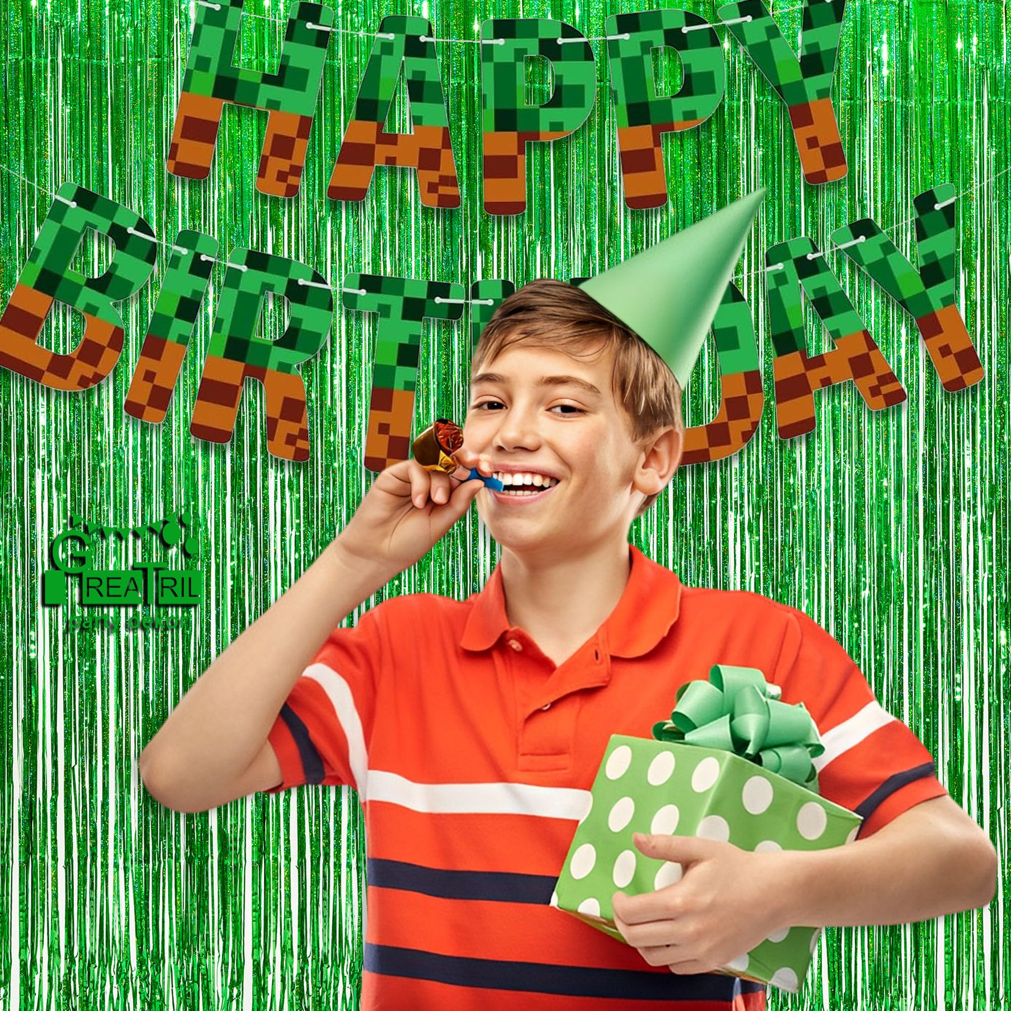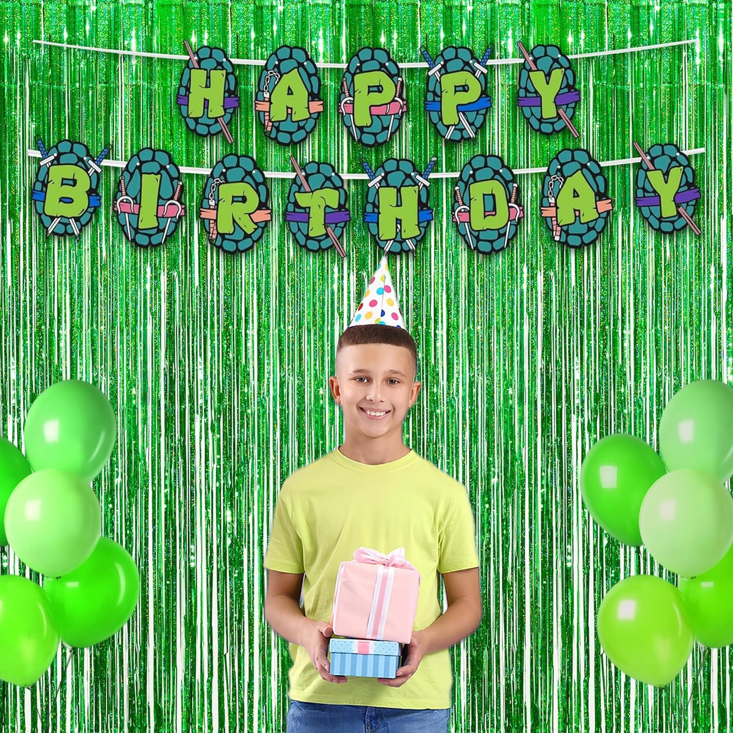 GREATRIL Brand green foil fringe curtains 2-packs, 3.2ft x 8.2ft for each pack. This green foil fringe curtain can make your party more youthful and attractive.