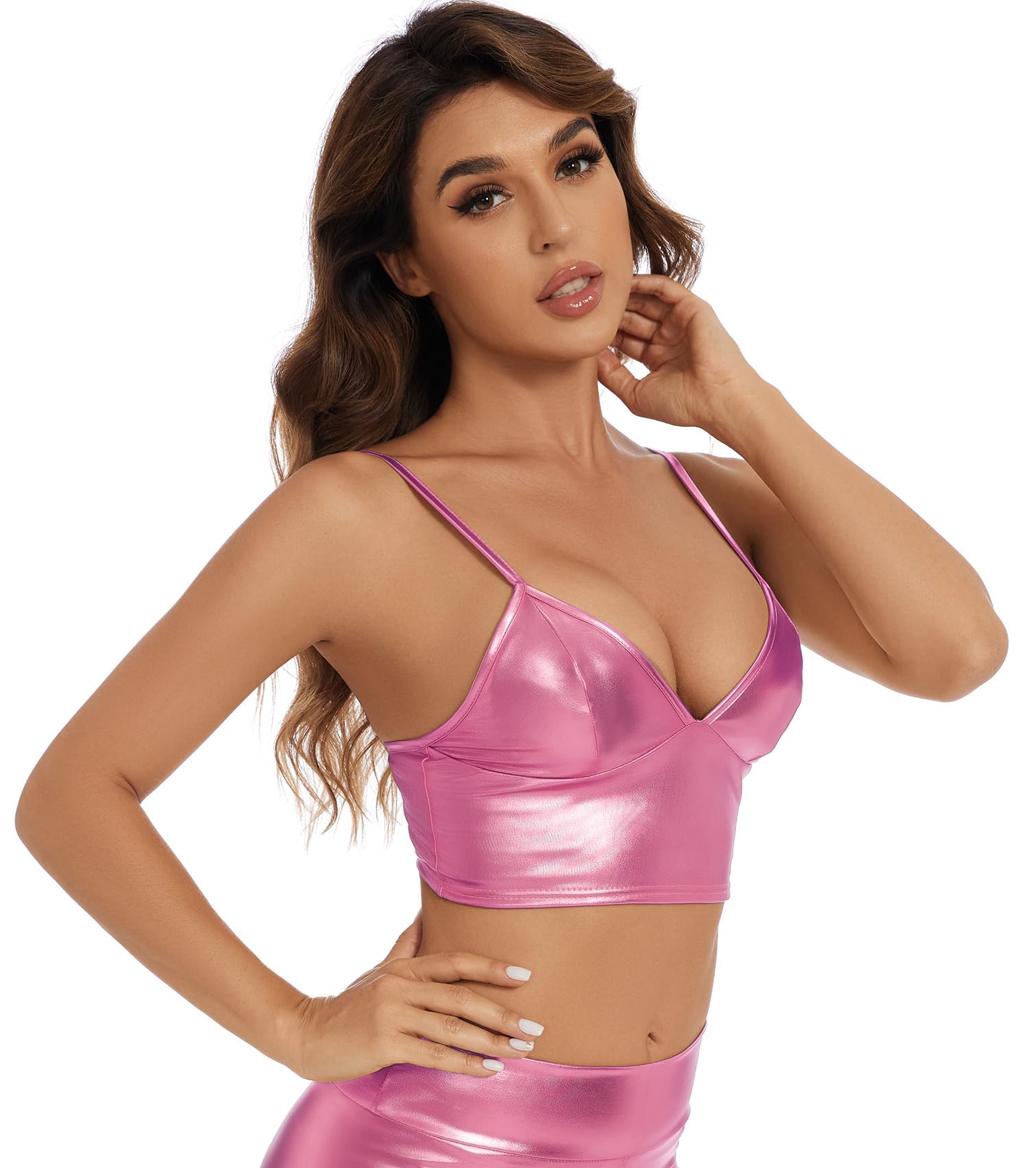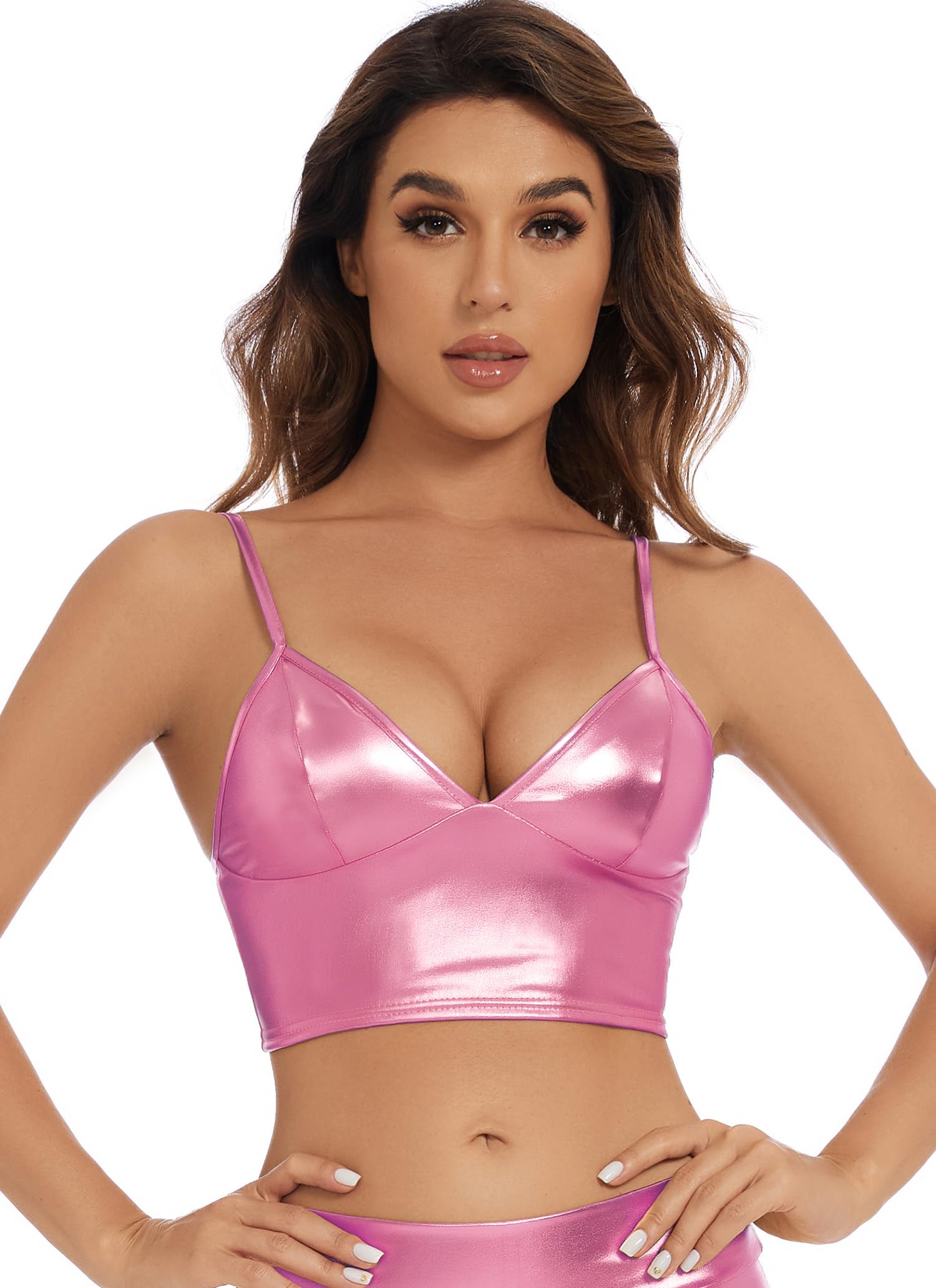 PREMIUM TOP: Nothing can shine brighter than you when you wear this metallic crop top! Crafted with semi-stretchy, breathable metallic fabric, these tops are shiny, sparkling.