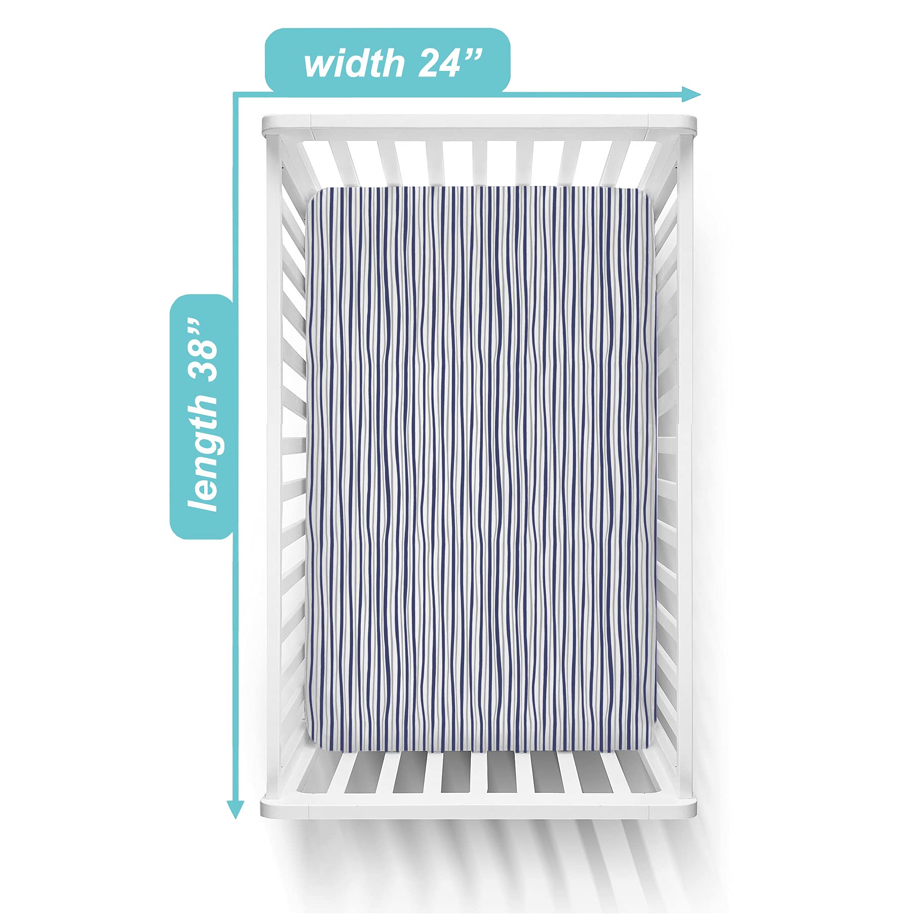 Perfect Fit & Secure Coverage: Made from 100% Cotton Jersey and measuring 24” x 38” with a depth of 5 inches, our mini crib sheets snugly fit most standard pack and play mattresses and mini crib mattresses