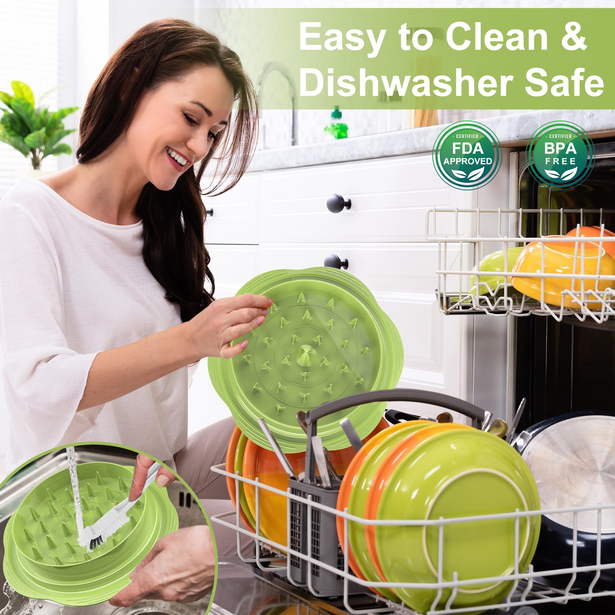 MUST HAVE KITCHEN GADGETS & ANTI-SLIP: Our chicken shredder tool upgrade the inner shred structure and strong anti-slip strip, more effective and saves time, we do not worry about sliding away from our kitchen desks again. The flower appearance design and the transparent lid add polka dots seem like a beautiful flower to bloom. Warm Tips: the rubber strip can be taken apart by yourself, easy to clean, if the part is missing, you can purchase a new fitting in our store