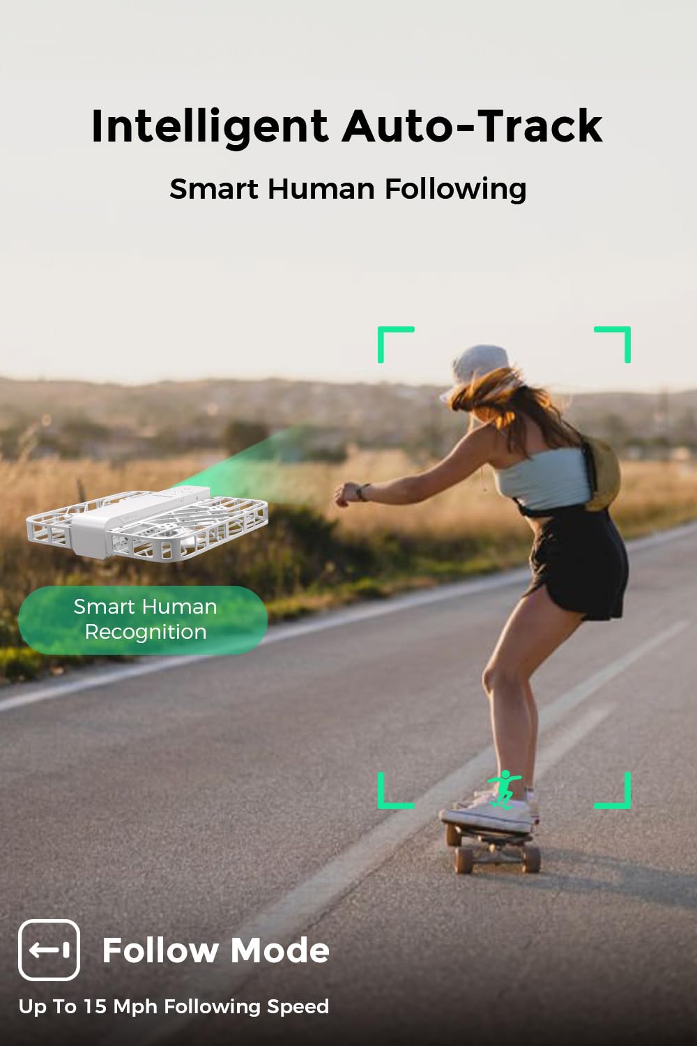 Intelligent Follow-Me Camera: Harnessing advanced tracking algorithms and a following speed of up to 15 mph, the HOVERAir follow-me self-flying drone becomes your intuitive cameraman, seamlessly tracking your every move. Ideal for cycling, skateboarding, and various sports, it effortlessly captures breathtaking moments, ensuring you're always at the center of the action.