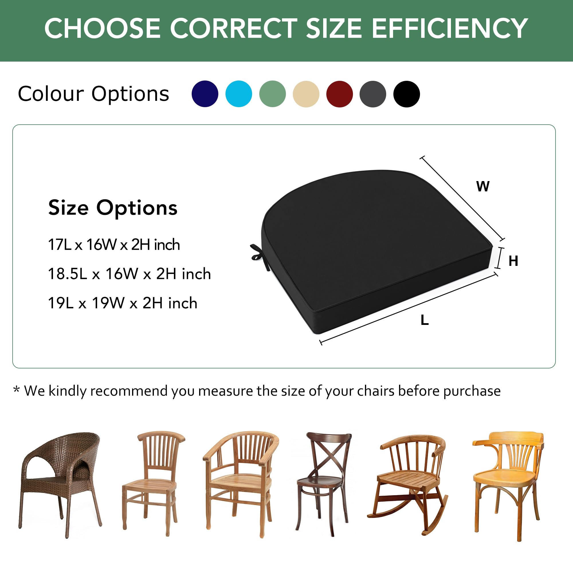 Perfect Fit for Most Chairs: This package includes 4 pieces D-shaped chair cushions, each measuring 17 x 16 inches with a 2-inch thickness. Designed for a snug and comfortable fit, they are ideal for various seating options such as garden chairs, front porch seats, barrel chairs, wicker furniture, and bistro sets. To ensure the best fit, please measure your furniture before purchasing.