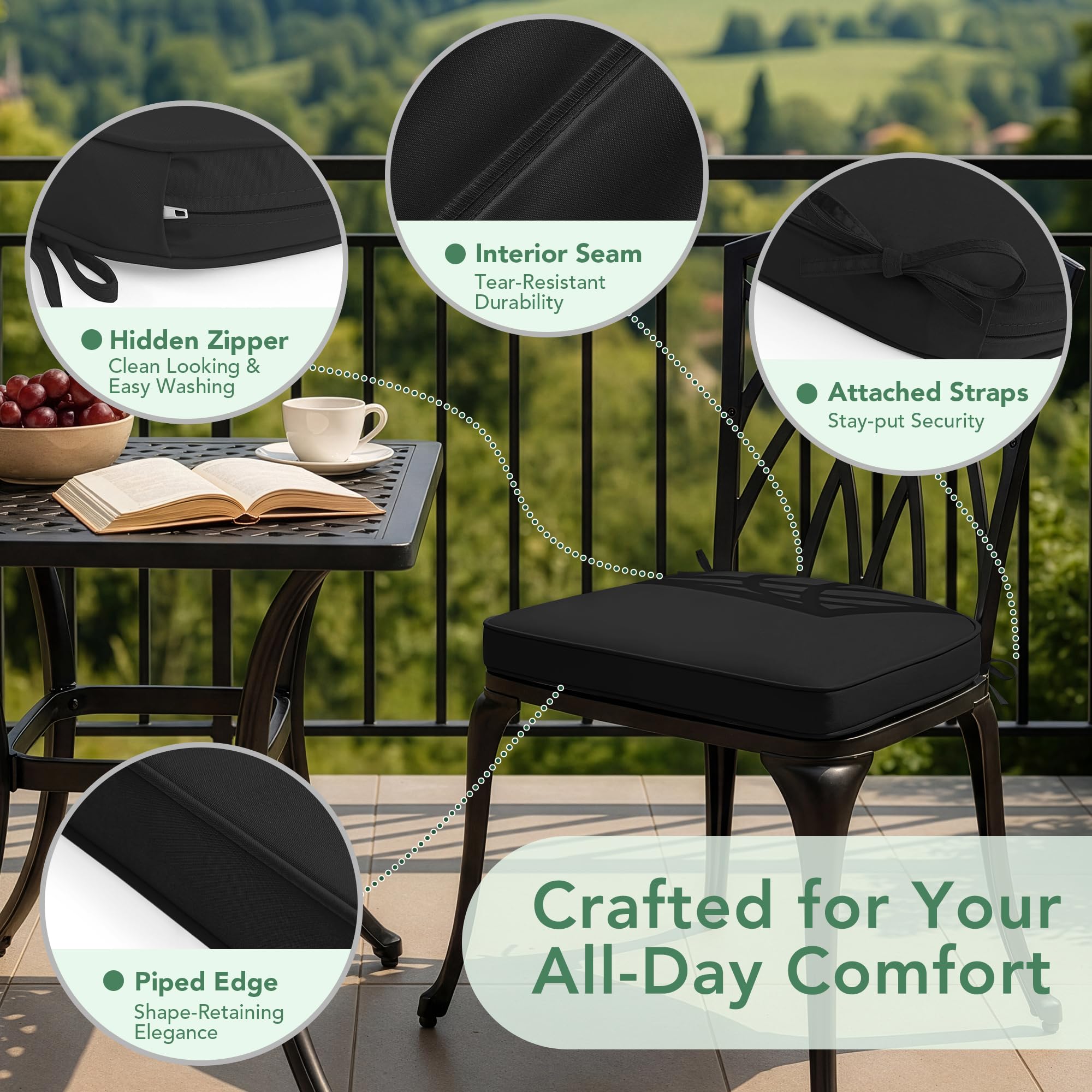Secure & Easy to Maintain: Each curved outdoor cushions features two durable ties to keep it securely fastened to your furniture, preventing slipping and shifting. The removable cover is machine washable for effortless cleaning—simply unzip, remove, and toss it in the wash to maintain a fresh look.