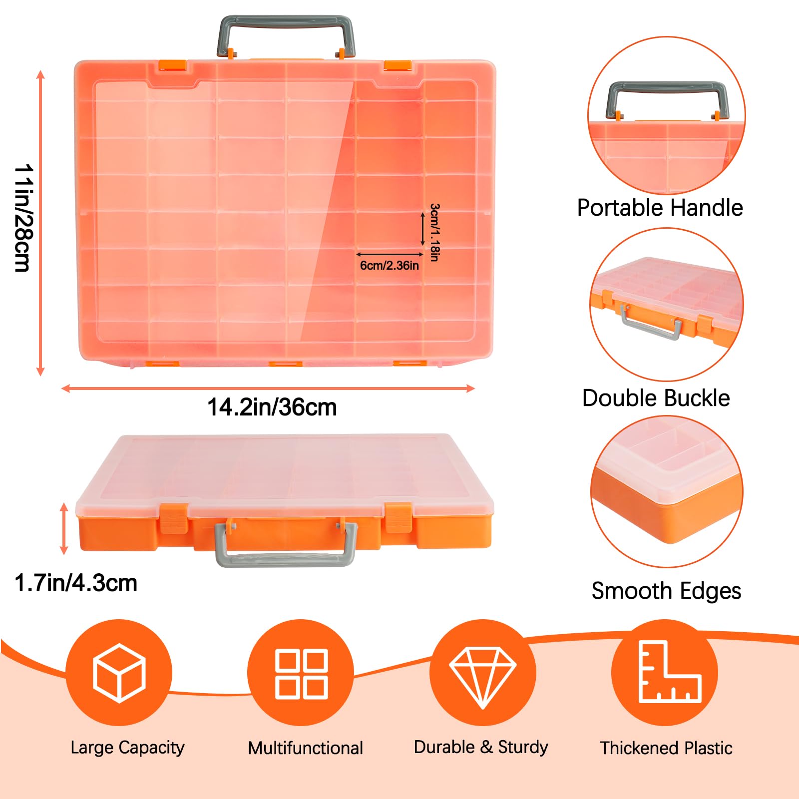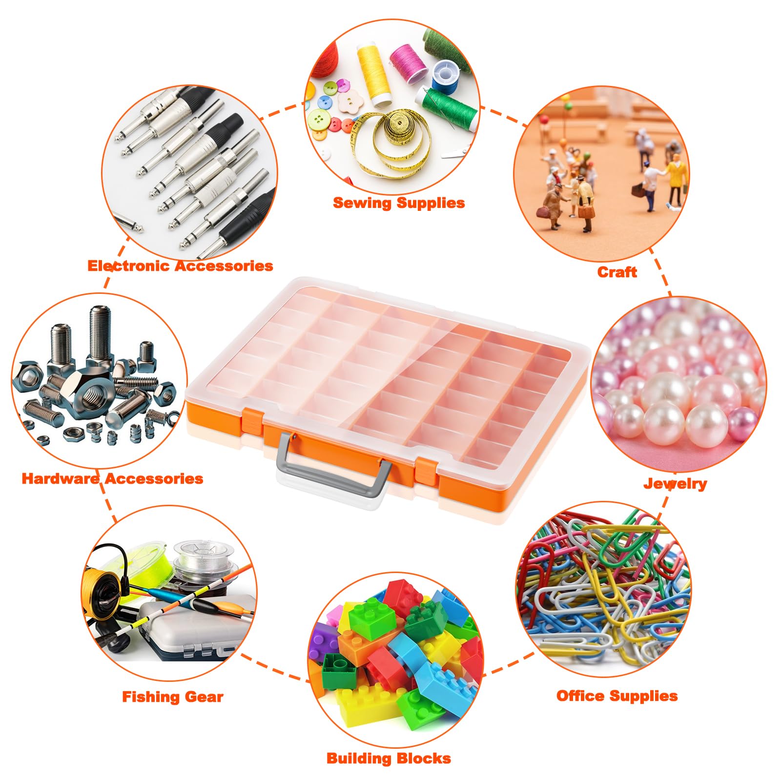 Large Capacity & Adjustable Compartments: The craft organizer box adopts a large capacity design, with dimensions of 14.2 x 10.3 x 1.7 inches/36 x 26 x 4.3 cm. Internally, there can be up to 48 compartments, each measuring 2.2 x 1.2 inches/5.5 x 3.1 cm. The compartments of the bead storage containers are adjustable and detachable, so you don't have to worry about items being limited by grid size and not being able to fit them.