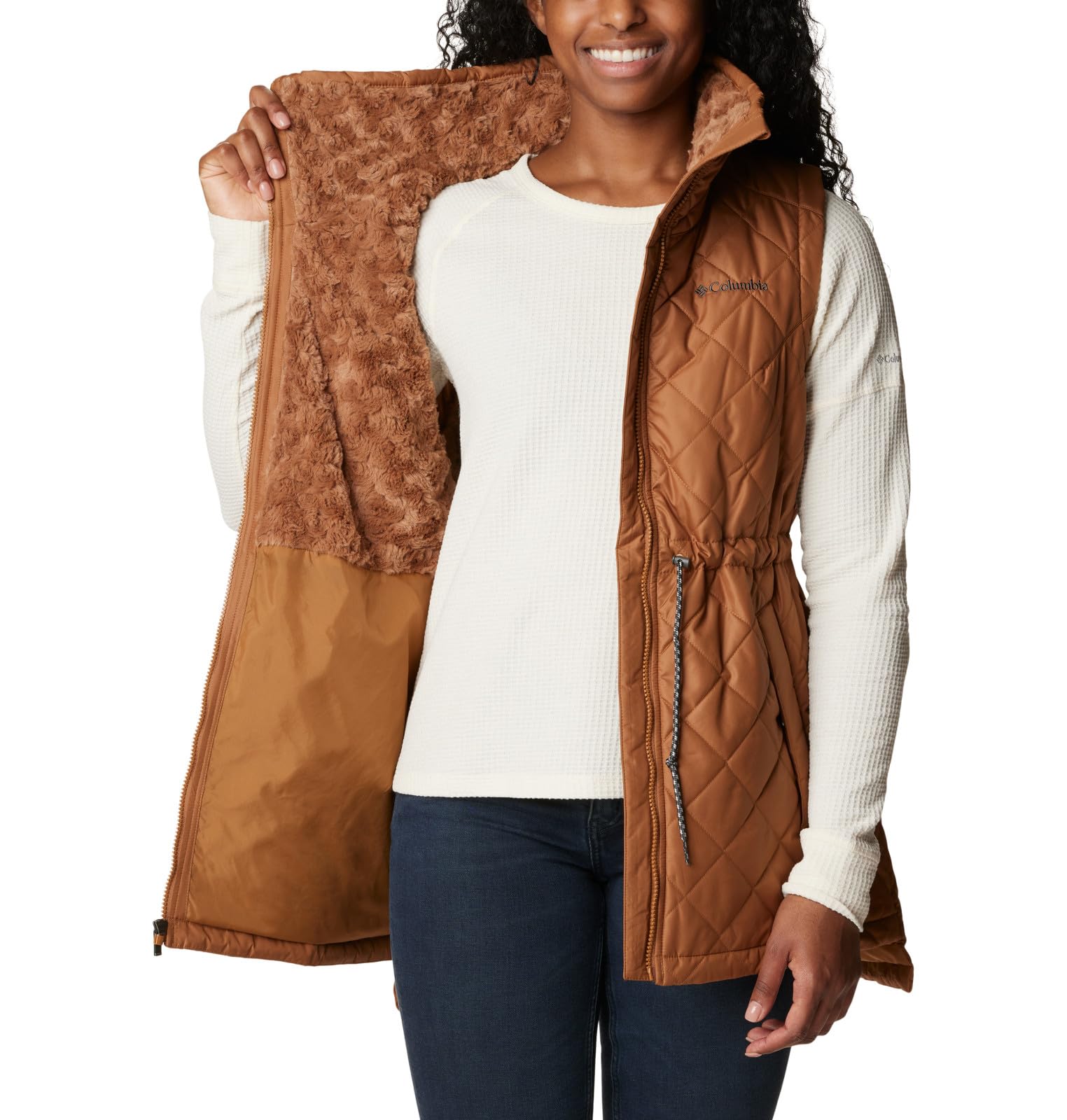 Description A silky-soft fleece lining adds plush coziness to this insulated vest. It warms without adding weight, whether worn on its own or under a shell when the weather gets rough. Columbia offers this vest in multiple colors and sizes. Extended sizing available. Regular fit.