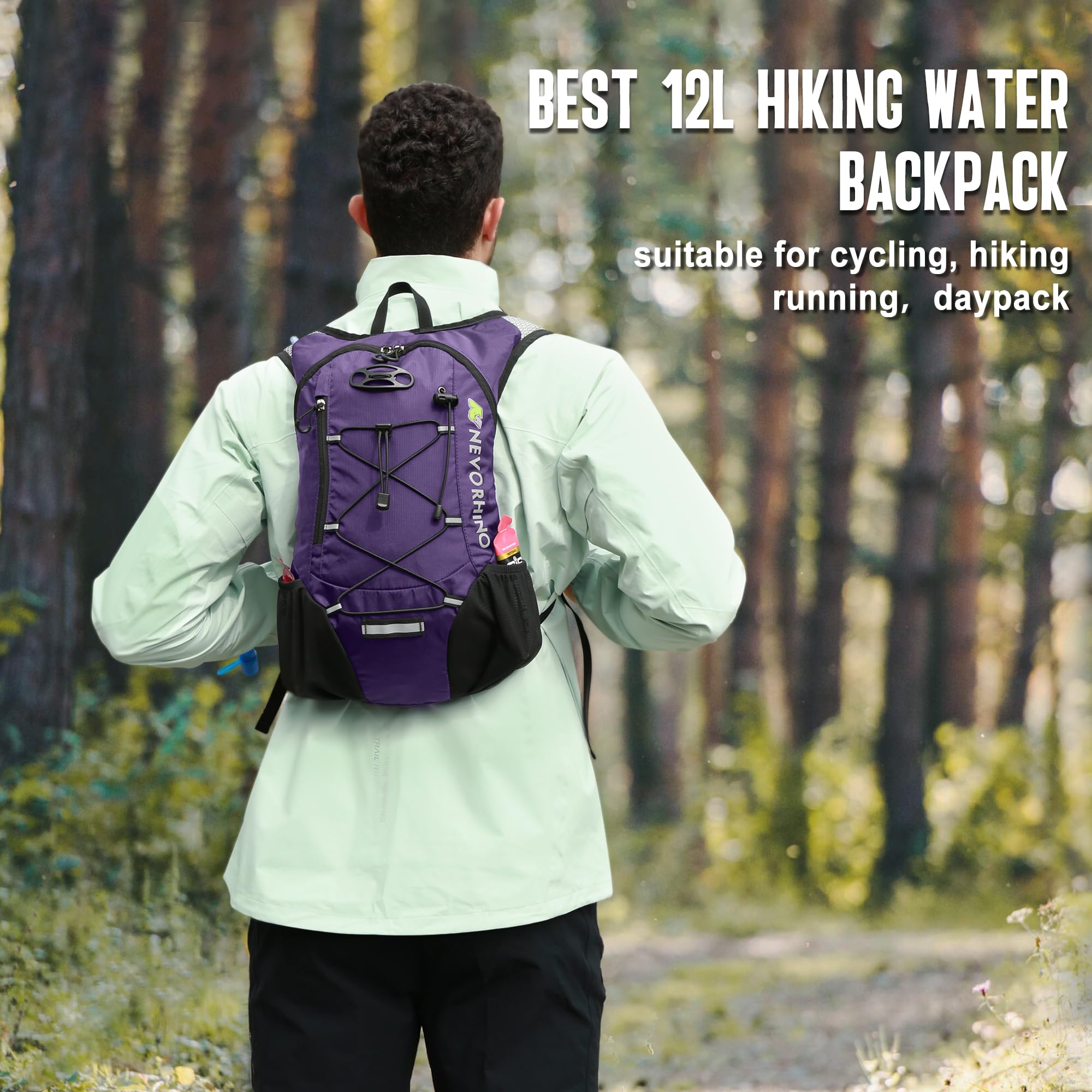Lightweight 12 L Hydration Backpack: Super lightweight 8.5 oz hydration pack backpack with 2 L water bladder. Waterproof and tear-resistant fabric, PU coated nylon hydration pack bears 25 lbs