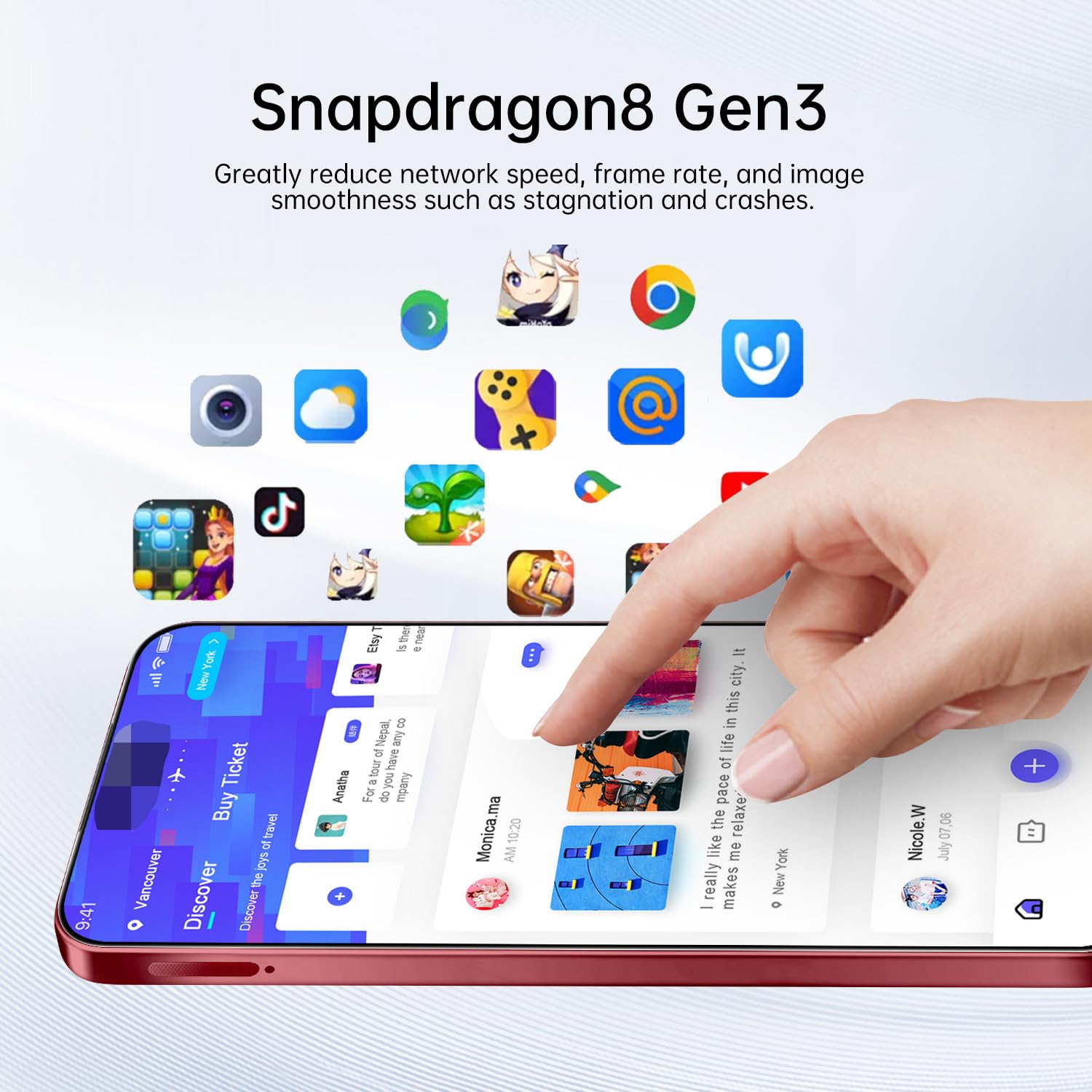 Snapdragon8 Gen3 CPU + 128GB Expandable TF Card】 Snapdragon8 Gen3 12 Core CPU with 8GB+256GB of memory is enough for you to use any application simultaneously, including watching movies and playing games. Install an additional 128GB storage card to easily store your favorite music, videos, and pictures, and easily improve the cost-effectiveness of your phone