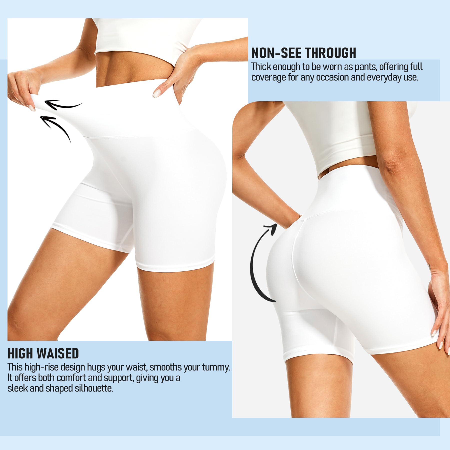 High Waisted & Tummy Control:These high-waisted biker shorts feature a 3.1" wide waistband that provides excellent tummy control and prevents slipping during intense activities. The waistband offers just the right amount of compression to give you a flattering, smooth silhouette, contouring your body for a curvy, feminine shape.
