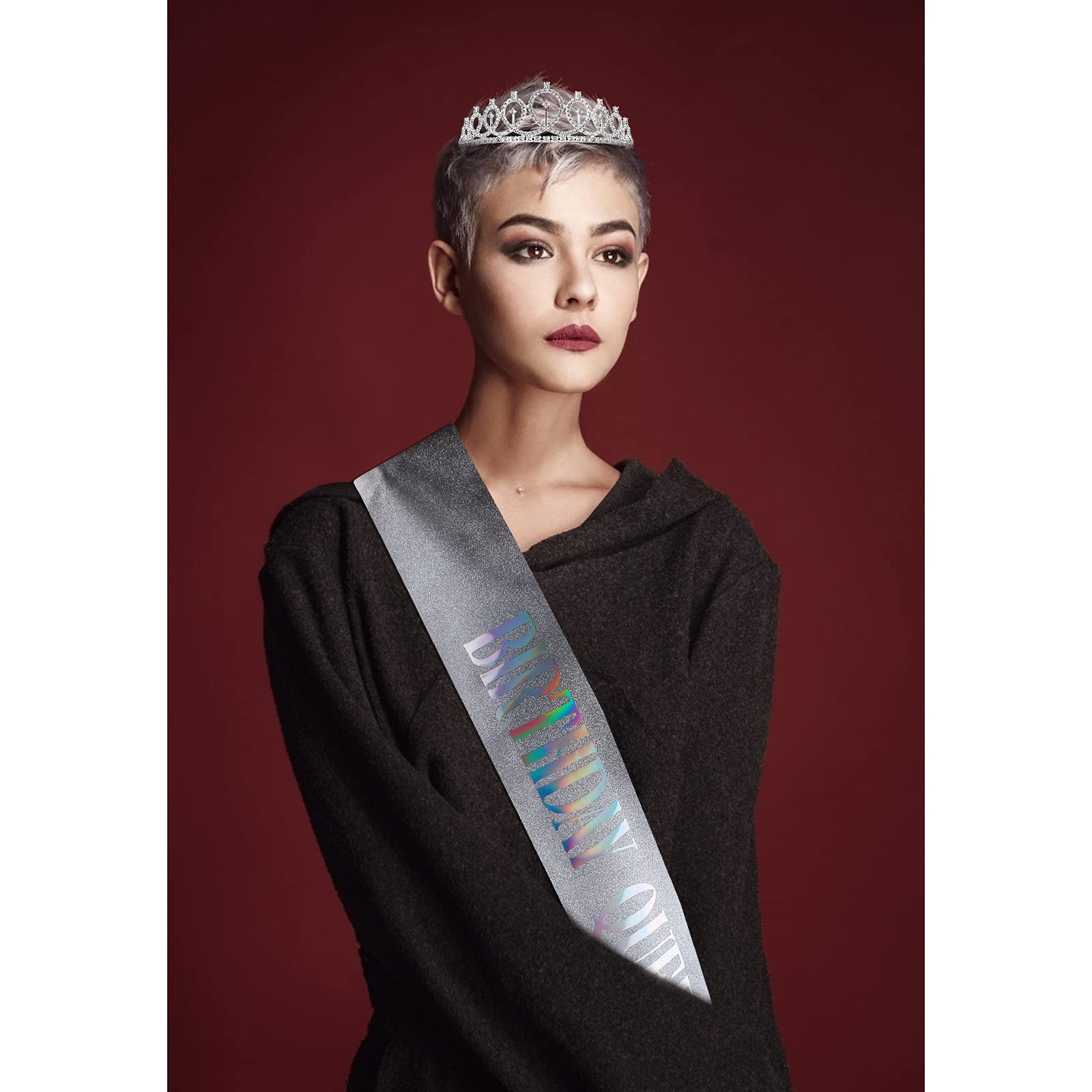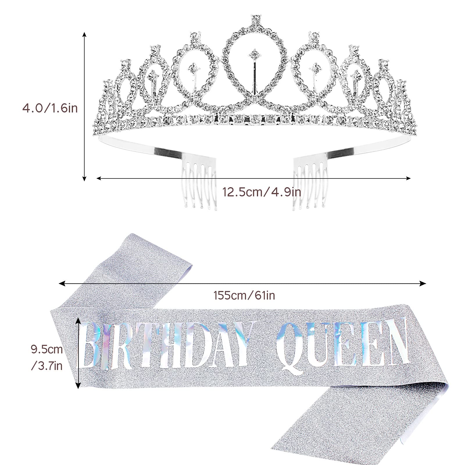 We will never been as young as we are now. Live for a no regrets life and enjoy your birthday party with our tiara and sash! Silver "Birthday Queen" sash + rhinestone tiara gifts set. Tiara Size: 12.5cm/4.9" length and 4.0cm/1.6" height. Sash Size: 61” length