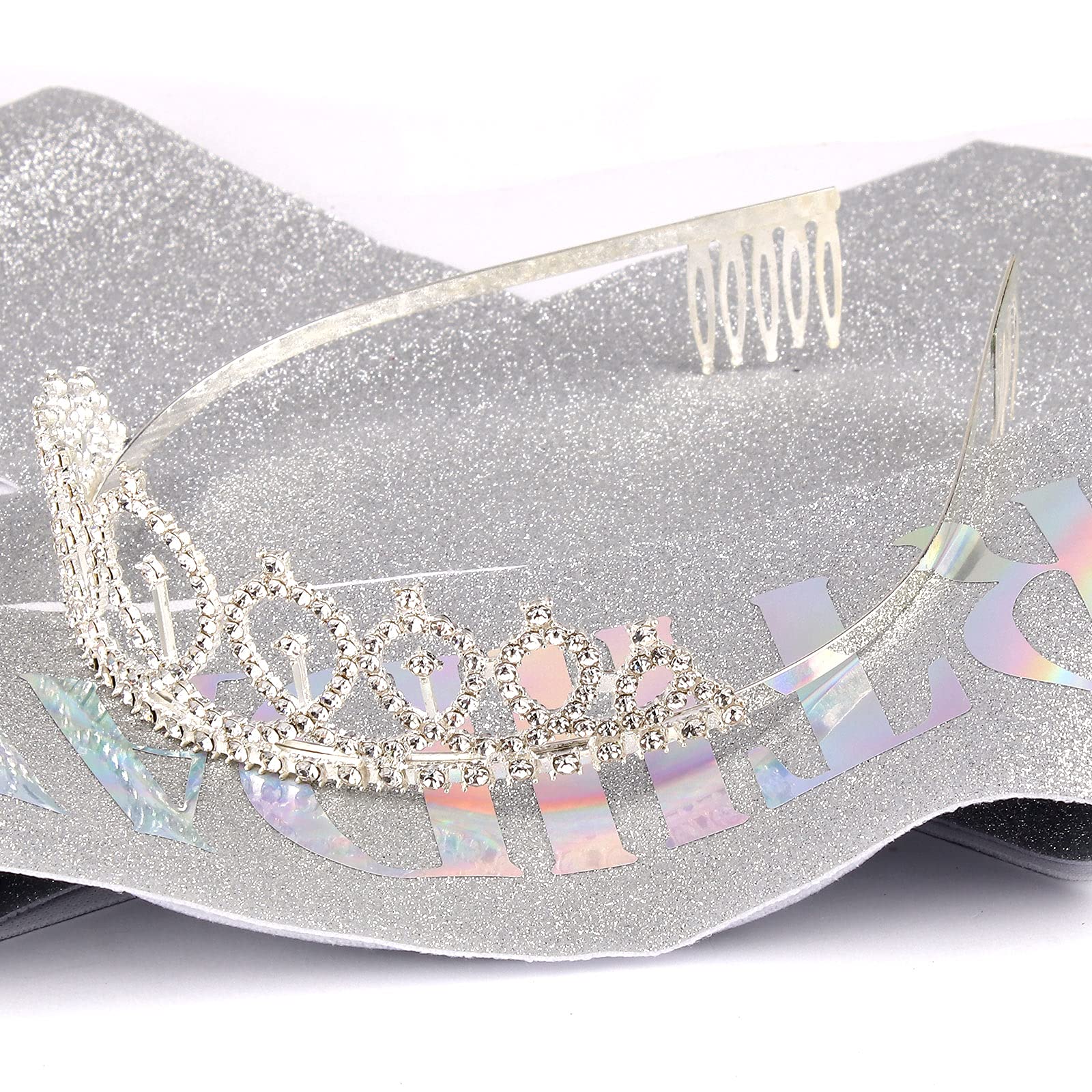 One Size Fits All: With 61” length, our birthday sash fits all type body figures. It can be easily adjusted by a clip. The tiara comes with comb design, they are suitable for all kinds of hair and stay in place.