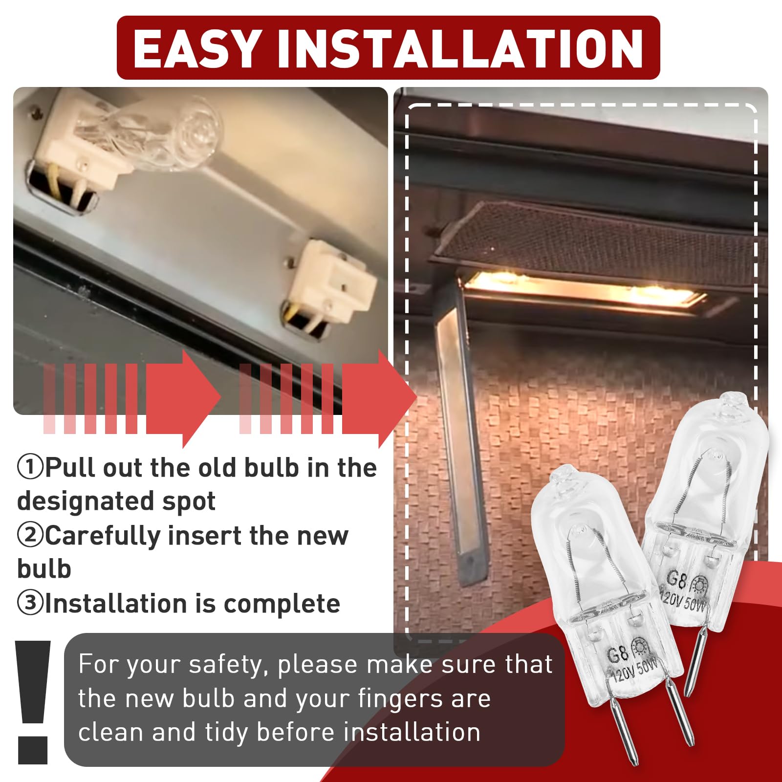 Energy-Saving and Cost-Effective: This light bulb lamp for GE microwave oven, G8 bi-pin base, 120V 50W 250 lumen high brightness and energy efficient light bulb