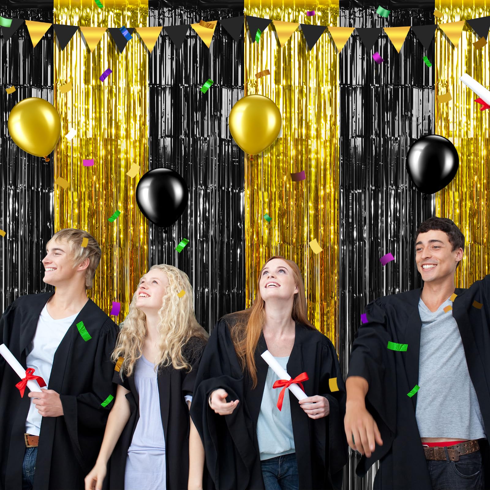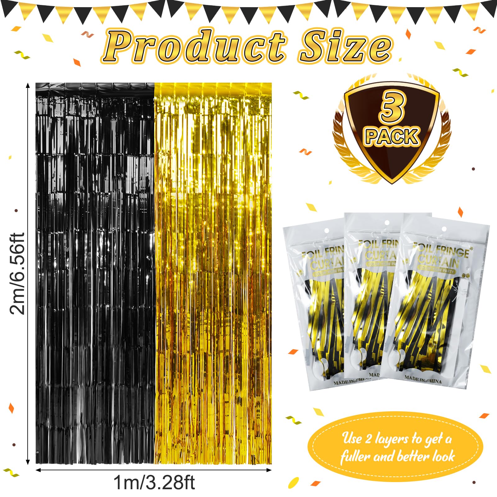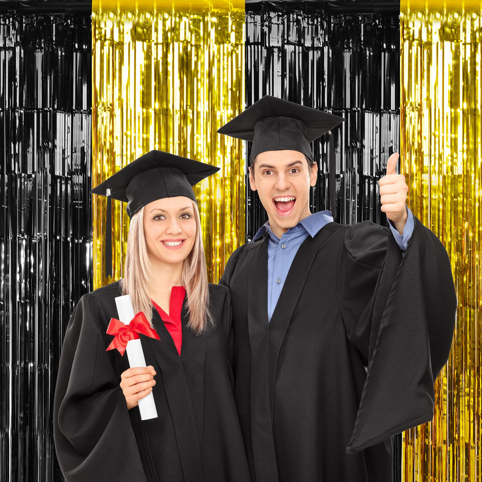 Black and Gold Graduation Fringe Curtain Decorations Features: Black and Gold Party Decorations The graduation foil fringe curtain boasts classic black and gold colors, and features a shiny design that is both beautiful and eye-catching. It will surely be a highlight of your party and add to the joyful atmosphere of your celebration. Wide Applications: Our graduation tinsel party decorations are perfect for your shiny themed party, such as a birthday, or graduation. It can be used not only as decoration for indoor and outdoor walls but also as a background, wallpaper, photo backdrop, or any other creative use you can imagine. Enhance the festive atmosphere for your guests to enjoy even more. Notes: Manual measurement, please allow slight errors in size. The color may have a slight difference due to different screen displays. Please stay away from fire.