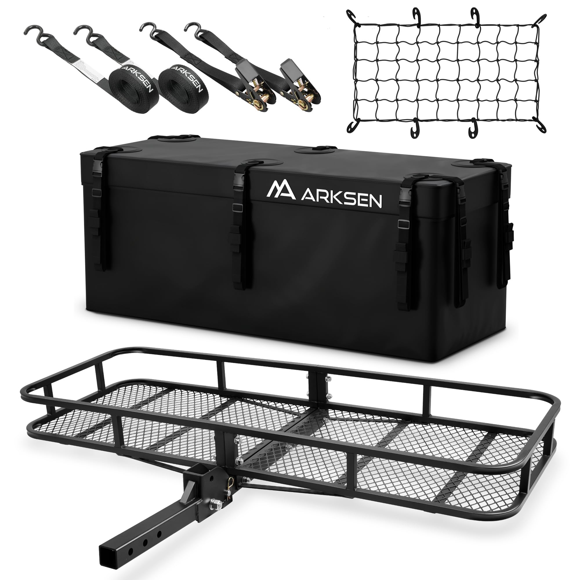 Spacious Storage Space: Easily accommodate multiple suitcases, camping equipment or large items, completely freeing up space in the car. Innovative folding design, which can be quickly folded when not in use to avoid taking up extra space. Optimized for 2-inch trailer interface, it is perfectly compatible with the back of a car, SUV, RV, truck or van.