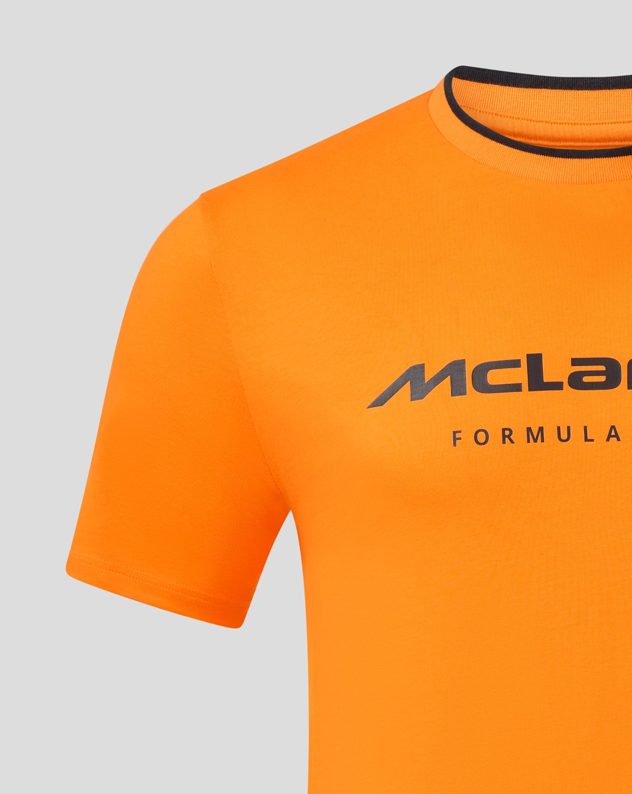 Description Boost your race day style with the McLaren Racing Unisex Core Essentials T-Shirt. This relaxed jersey boasts a ribbed crew neck with subtle team detailing and a prominent screen-printed logo at the front. Set-in short sleeves and a classic fit ensure unrestricted movement as you prepare for the next Grand Prix.