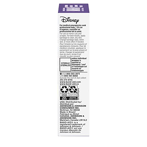 Care for your child's minor wounds and bring a smile to their face with Disney's Encanto Band-Aid Brand Adhesive Bandages. These first aid adhesive bandages for kids and toddlers cover minor wounds, cuts and scrapes to deliver daily wound protection. Perfect for kids and toddlers, each individually wrapped sterile bandage features Disney's Encanto characters from the animated movie to make first aid more fun for your child. As part of your essential first aid supplies, the Disney decorated bandages protect minor wounds from contact with germs and dirt that may cause infection and delay healing. These sterile kids' bandages come in various sizes and are comfortable to wear thanks to a non-stick pad that won't adhere to the wound. The box contains individually wrapped sterile first aid bandages. ©Disney
