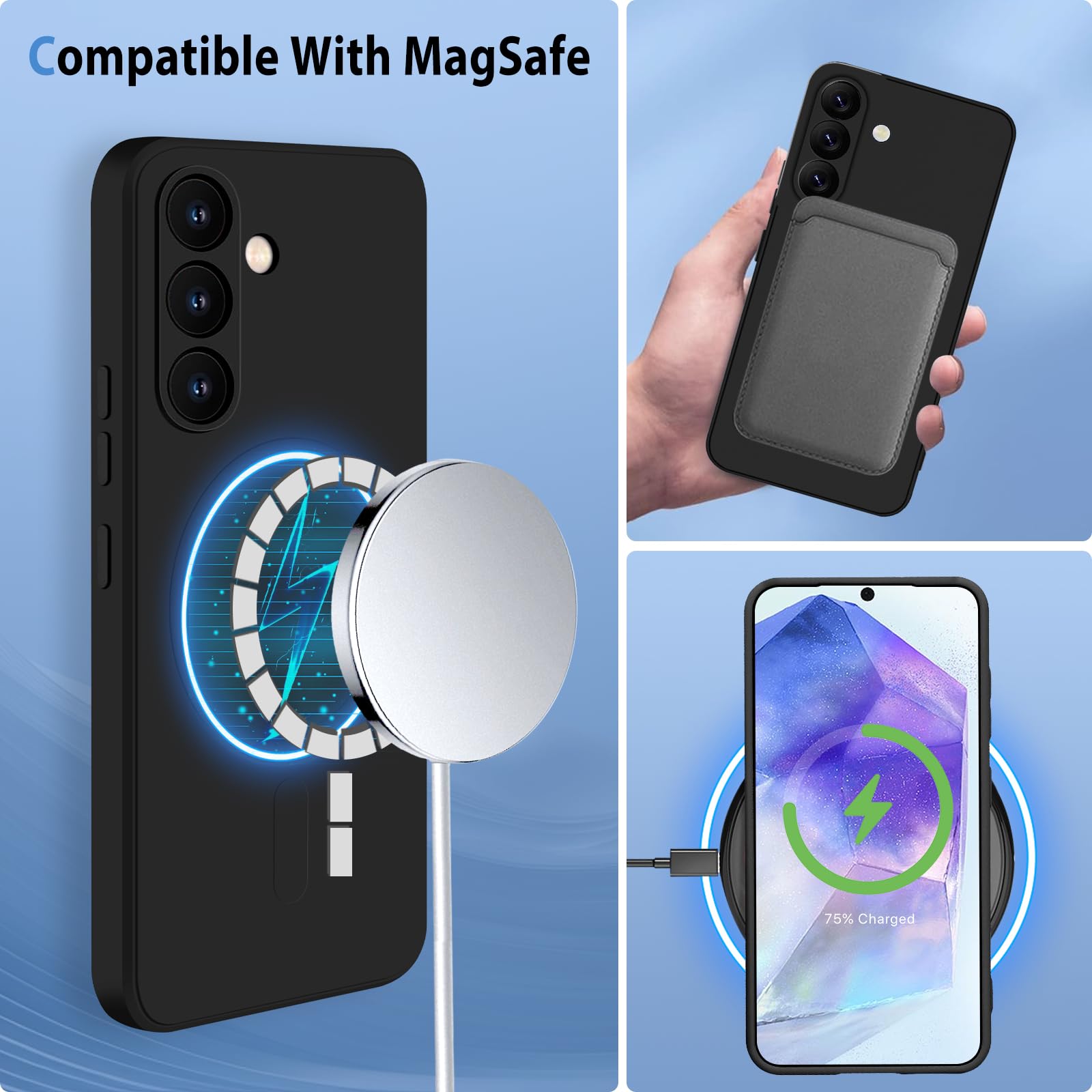 Perfect Fit: Ultra thin silicone soft case for Samsung Galaxy A55 is only compatible with Samsung Galaxy A55 6.6 Inch. It support wireless charging and compatible with Mag--safe. Magnetic design for Samsung Galaxy A55 5G mobile phone case looks more stylish and cool