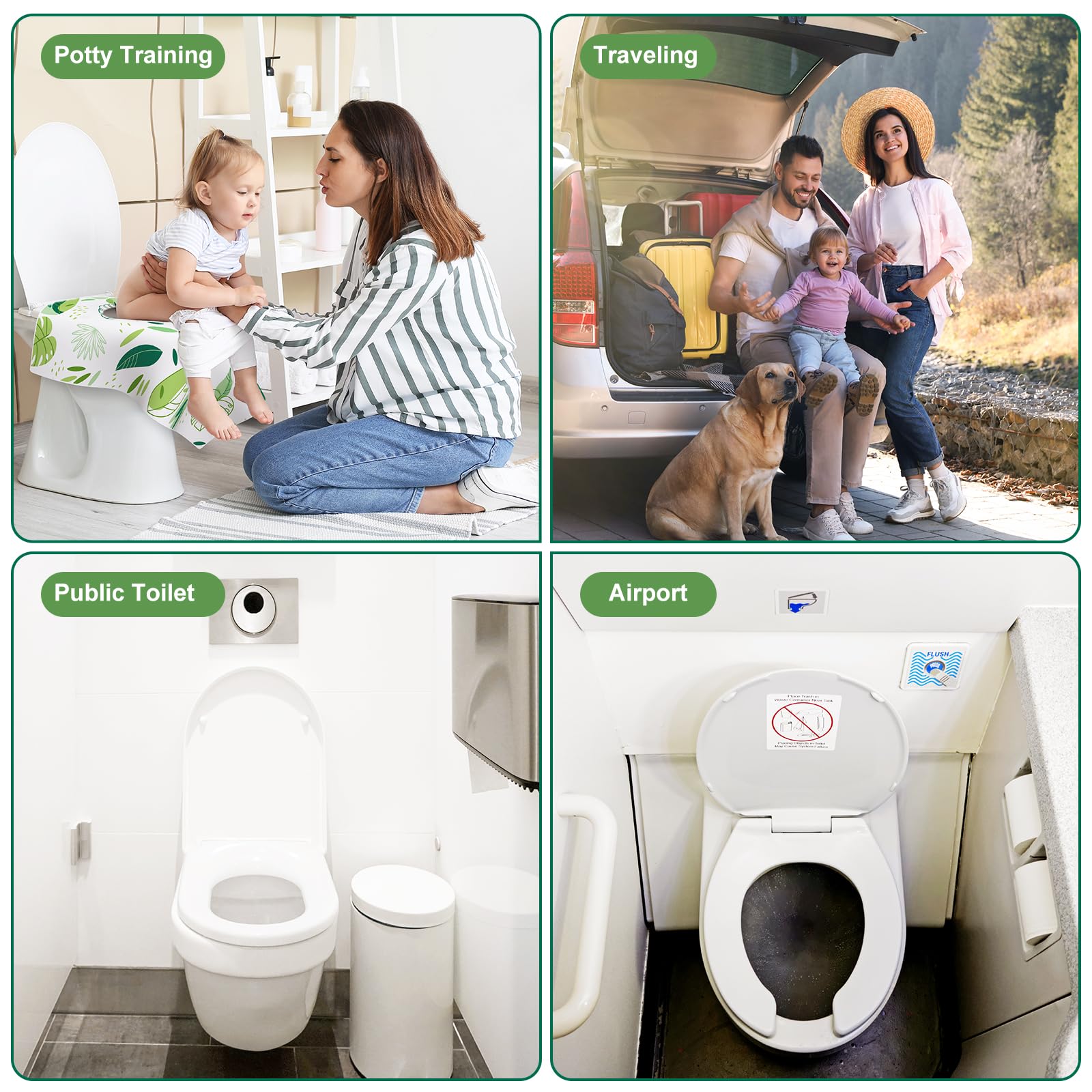 No-Slip Design: Our travel toilet seat covers come equipped with two adhesive strips to keep them in place, making them especially suitable for training children to use the toilet independently.