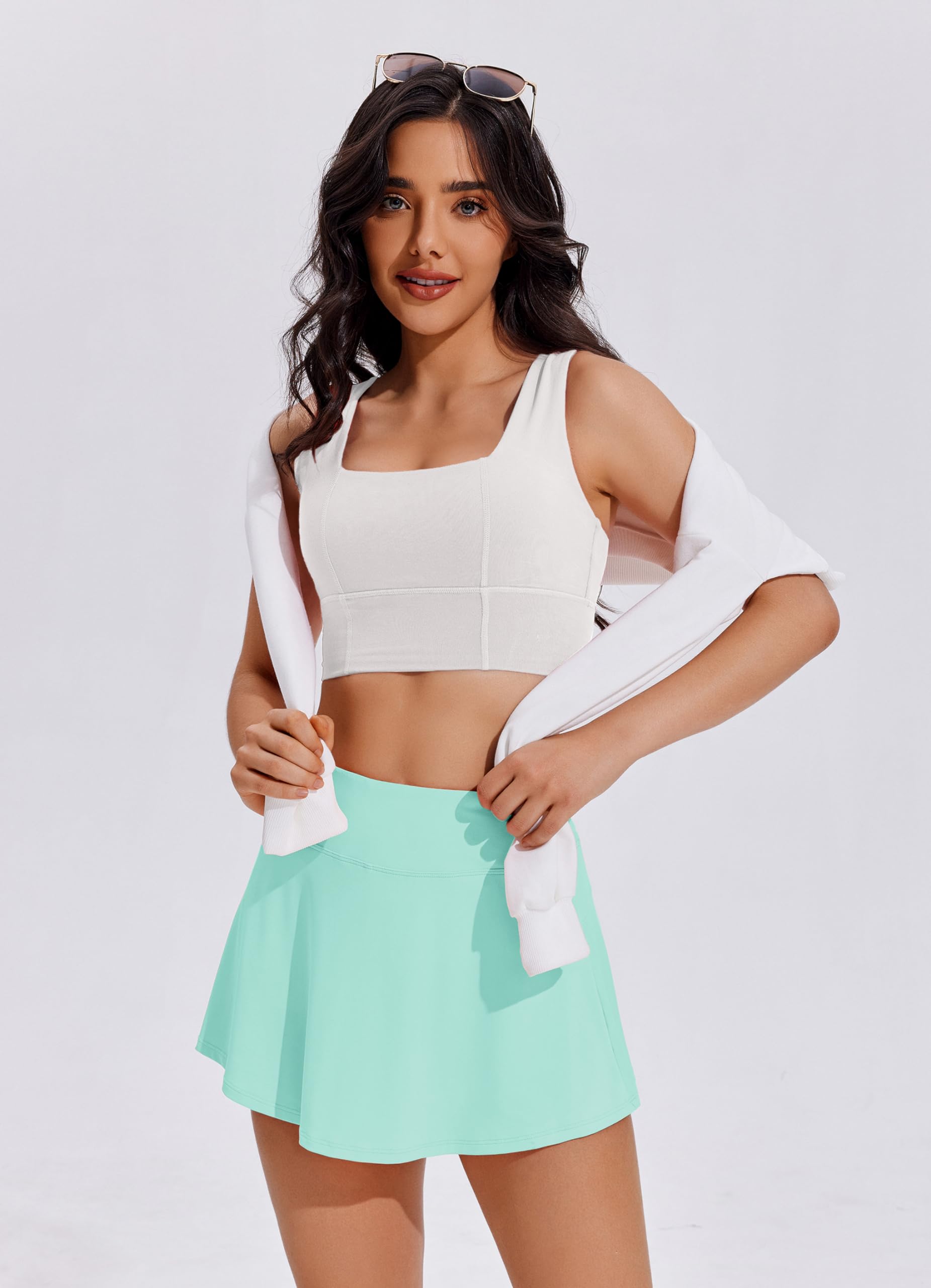Built-in Shorts & Pocket--Athletic skorts with inner lining resist chafing, with an inner pocket for tennis balls or small items like keys or phones.
