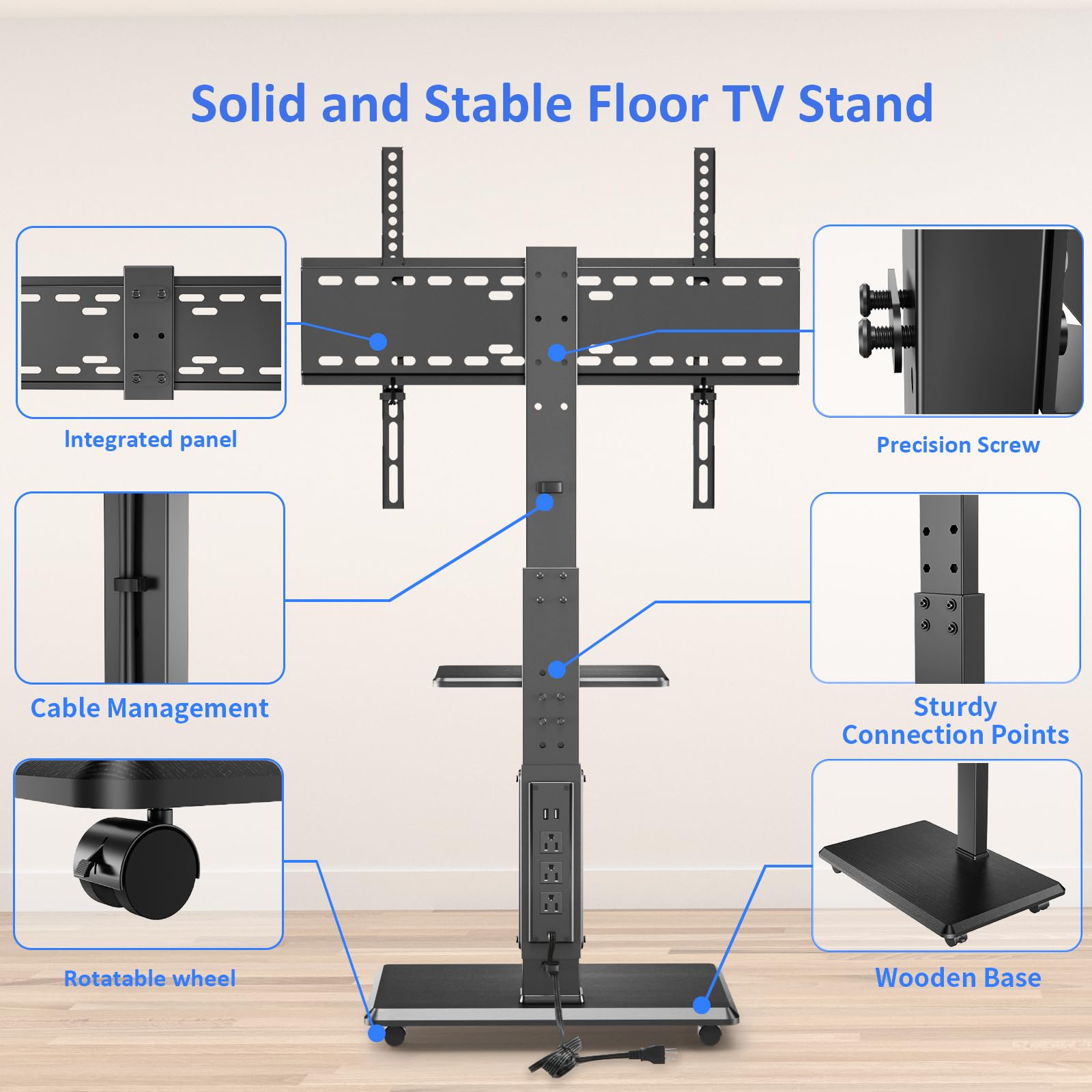【Suitable for Many Occasions】The tall TV stand is suitable for corner, bedroom, living room, outdoor, apartment, office, Gym etc. The wooden base and steel support are easy to clean and the stand with wheels makes it easy to move when you need to clean the floor.