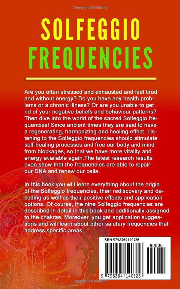 Activate your self-healing powers with the Solfeggio frequencies and bring your body, mind and soul back into balance! Are you often stressed and exhausted and feel tired and without energy? Do you have any health problems or a chronic illness? Or are you unable to get rid of your negative beliefs and behaviour patterns, even though you've tried so many techniques and therapies? Do you want to grow personally and spiritually and expand your consciousness? Then dive into the world of the sacred Solfeggio frequencies! Since ancient times they are said to have a regenerating, harmonizing and healing effect. Listening to the Solfeggio frequencies should stimulate self-healing processes and free our body and mind from blockages, so that we have more vitality and energy available again. Besides, the frequencies provide relaxation and bring us back into balance. As a result healing can happen on all levels. The latest research results even show that the frequencies are able to repair our DNA and renew our cells. Now the Solfeggio frequencies are gaining more and more importance as an alternative healing method and are becoming more and more widespread. In this book you will learn everything about the origin of the Solfeggio frequencies, their rediscovery and decoding as well as their positive effects and application options. There are nine different Solfeggio frequencies, each of which affects our body and mind differently. Of course, the Solfeggio frequencies are described in detail in this book and additionally assigned to the chakras. Moreover, you get application suggestions and will learn about other salutary frequencies that address specific areas. Are you curious about the healing effects of the Solfeggio frequencies? Then start reading this book today and initiate a new era of healing!