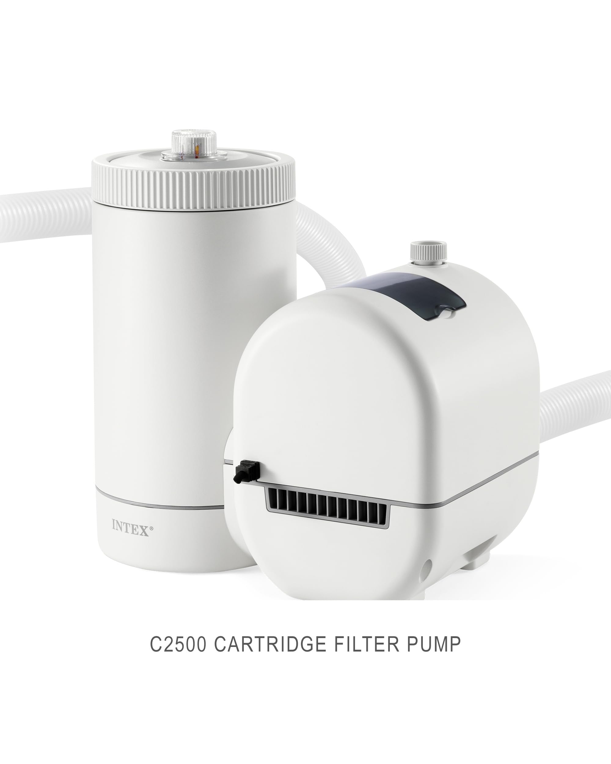 2500 GPH PUMP FLOW RATE -– Water flow rate at pump (pump capacity): 2,500 gph (9,463 lph); in pool (system flow rate): 1,900 gph (7,192 lph); suitable for INTEX pools up to 15,200 gal with 1.25in (32mm) diameter hose fitting